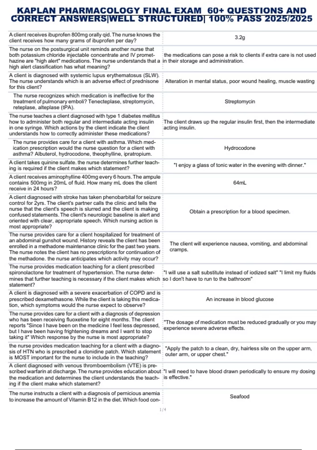 BUNDLE::KAPLAN PHARMACOLOGY INTEGRATED EXAM/KAPLAN PHARMACOLOGY FINAL EXAM PACKAGE QUESTIONS AND ANSWERS