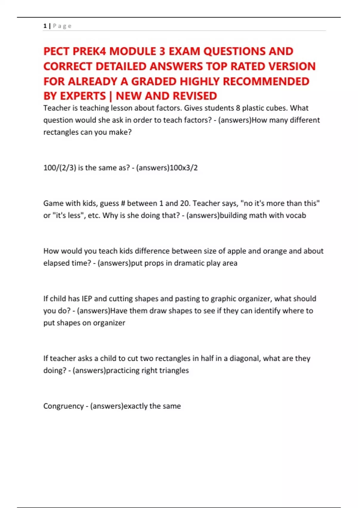 PECT PREK4 MODULE 1-3 EXAM ALL QUESTIONS AND WELL ELABORATED ANSWERS TOP RATED VERSION FOR ALREADY A GRADED