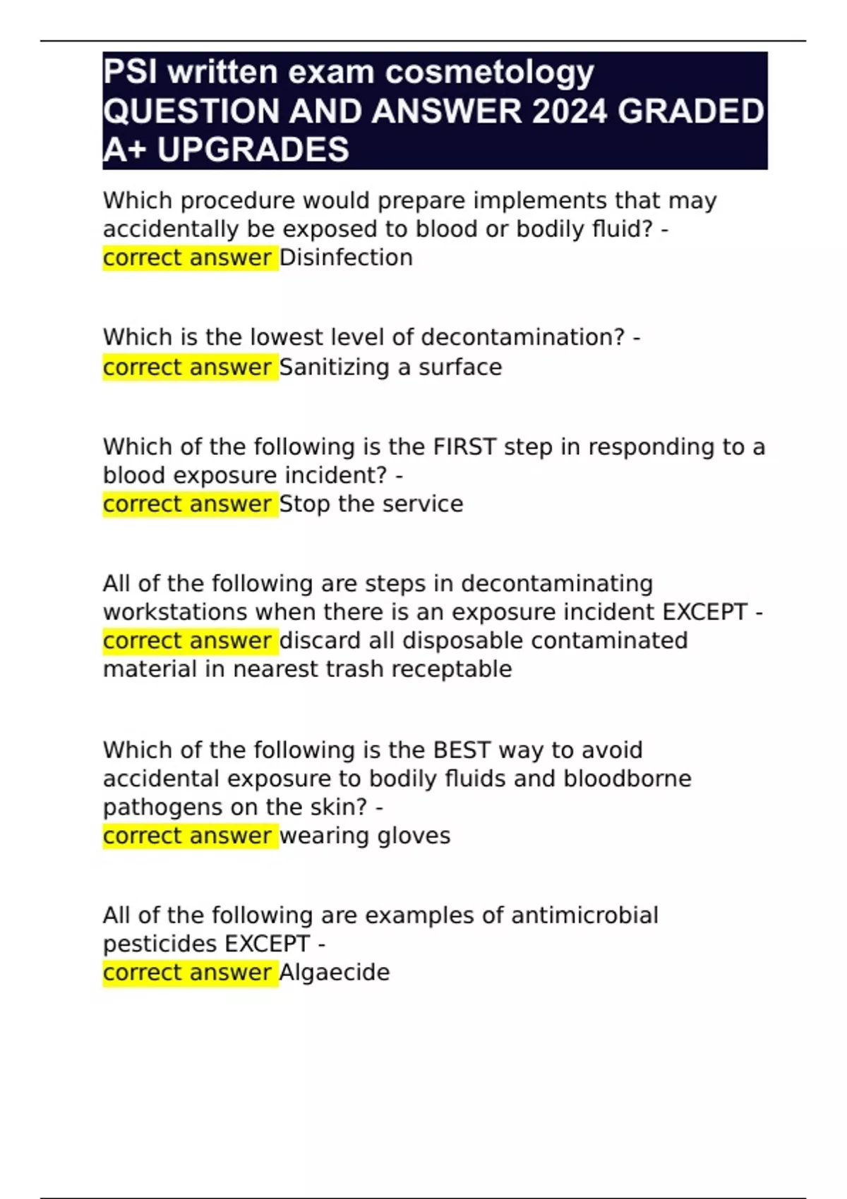 Florida cosmetology state board (clinical) Exam Questions And Answers.docx Florida Cosmetology clinical Arial QUESTION AND ANSWER 2025 GRADED A+ UPGRADE.docx Florida Stateboard Cosmetology Exam Practice Test (Angel) Questions And Answers.docx Client Services (Cosmetology 2,3,4,7,8,15) Exam Questions And Answers.docx