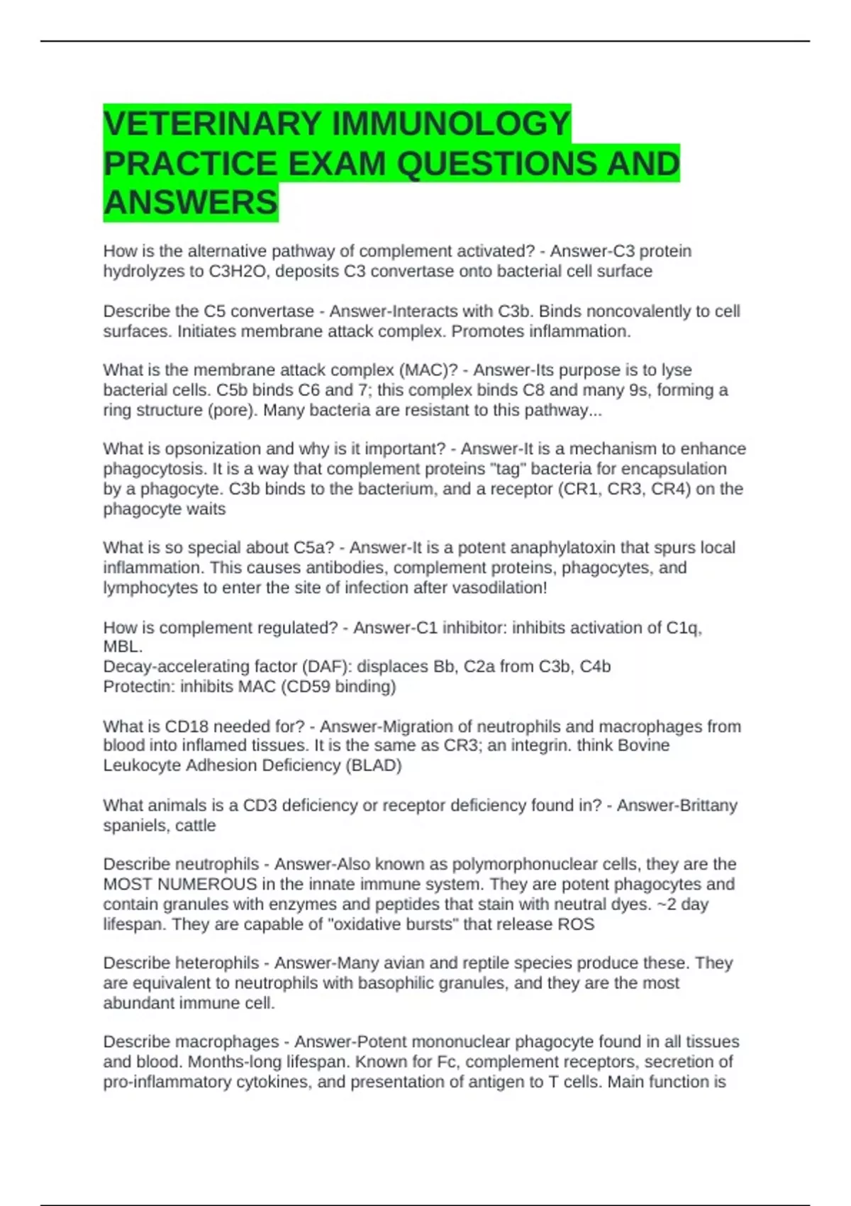 VETERINARY IMMUNOLOGY PRACTICE EXAM QUESTIONS AND ANSWERS