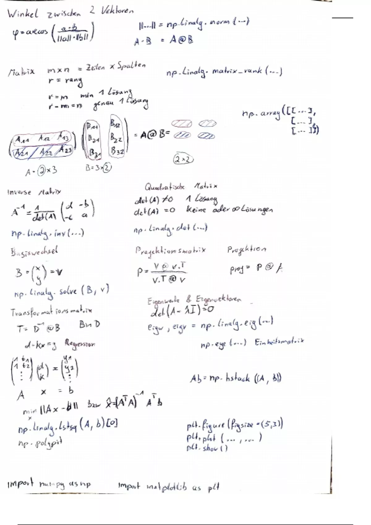 Lineare Algebra Zusammenfassung Übungen und Formelsammlung für die Prüfung inkl. ausgewählte Python befehle