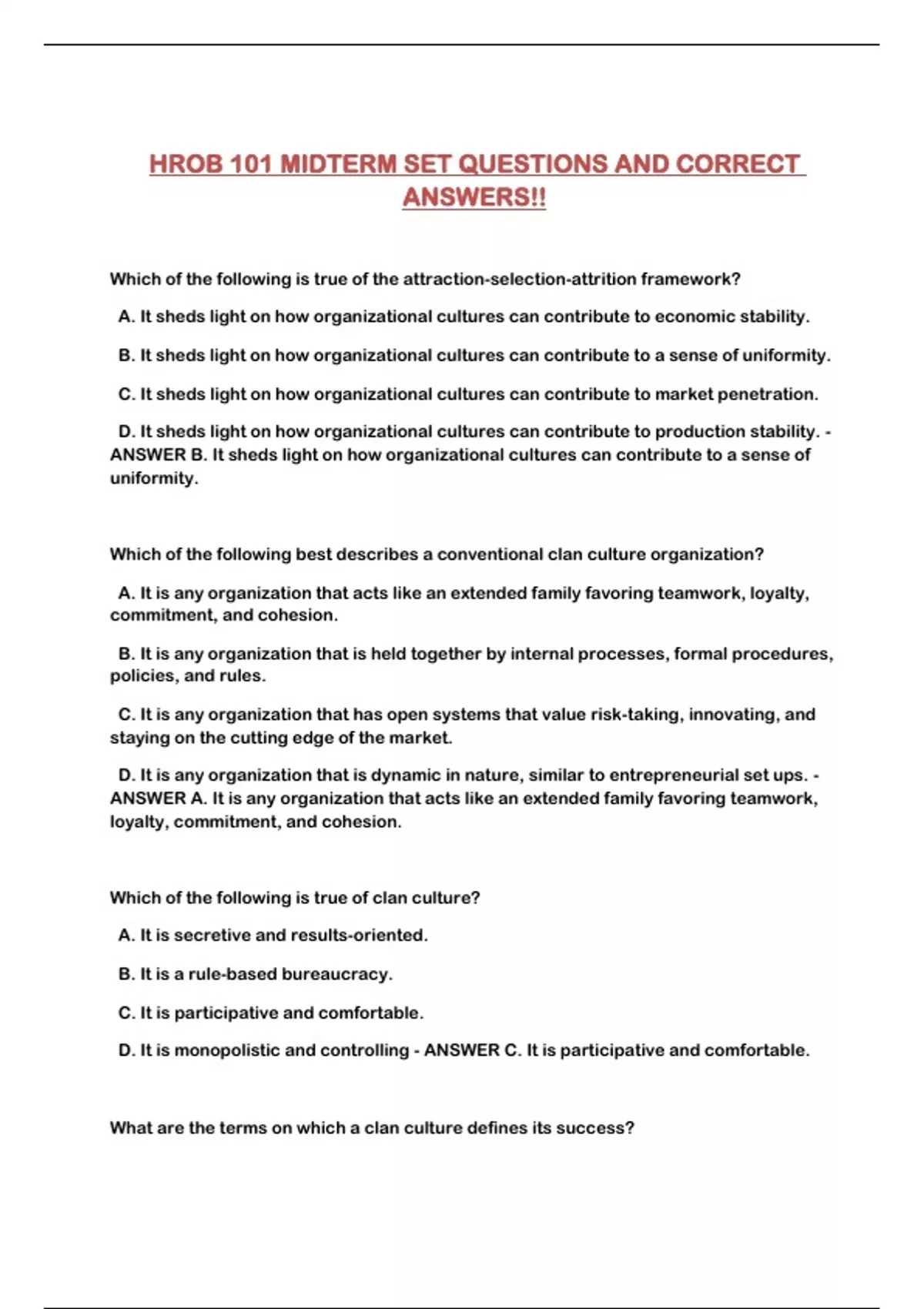 HROB 101 MIDTERM SET QUESTIONS AND CORRECT ANSWERS!!