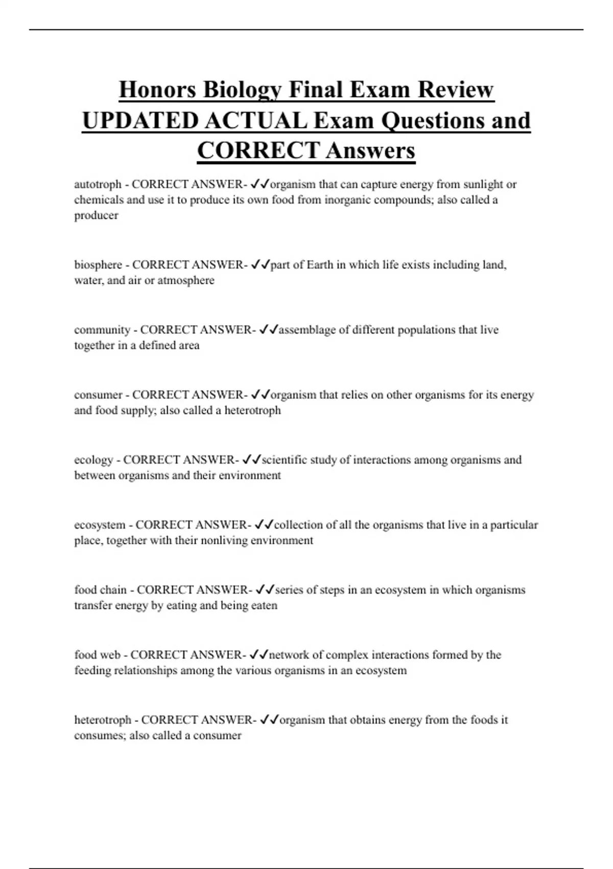 Honors Biology EOC Bundled Exam Questions WITH CORRECT Answers