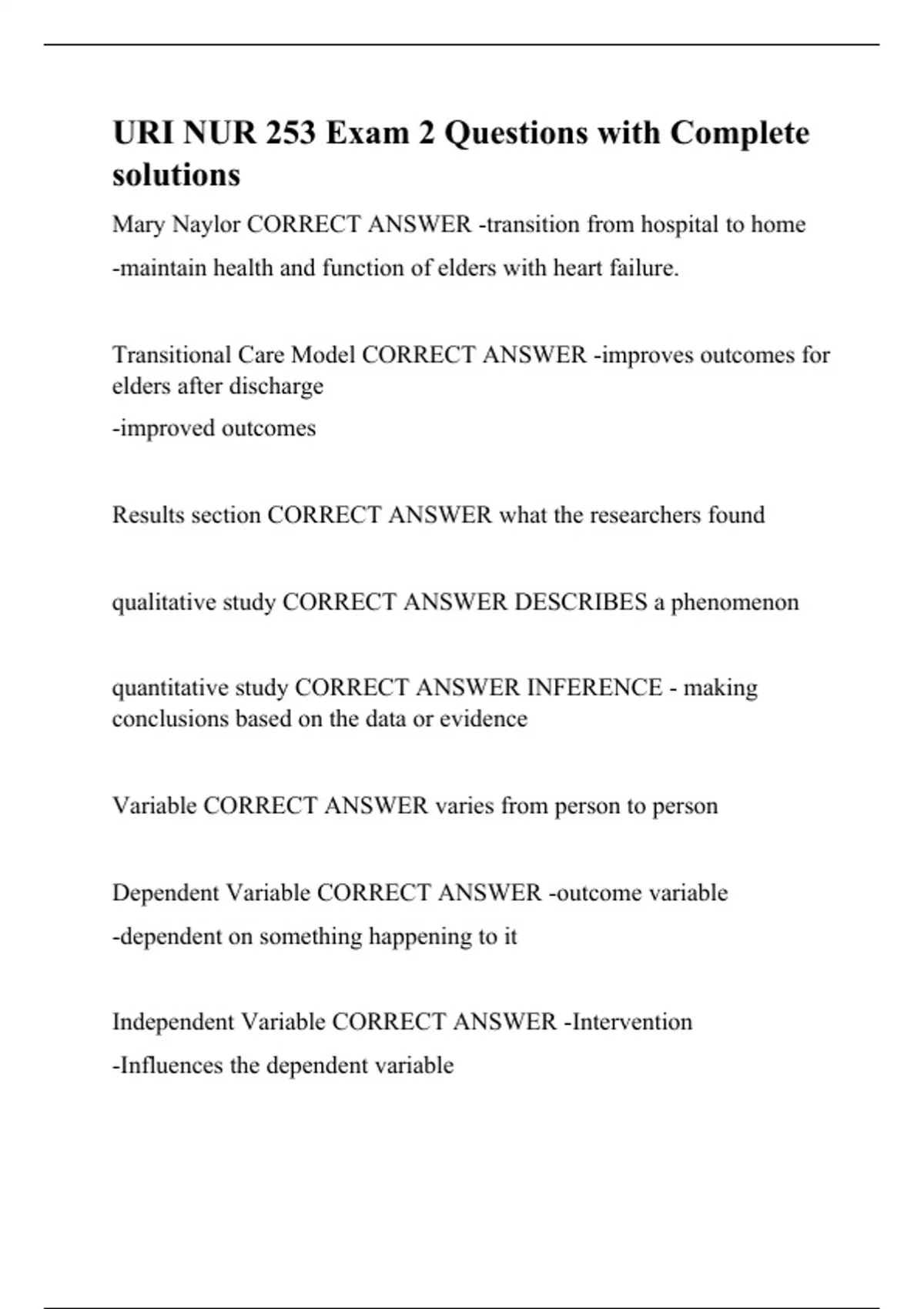 URI NUR 253 exam 1 Questions with Complete Solutions.