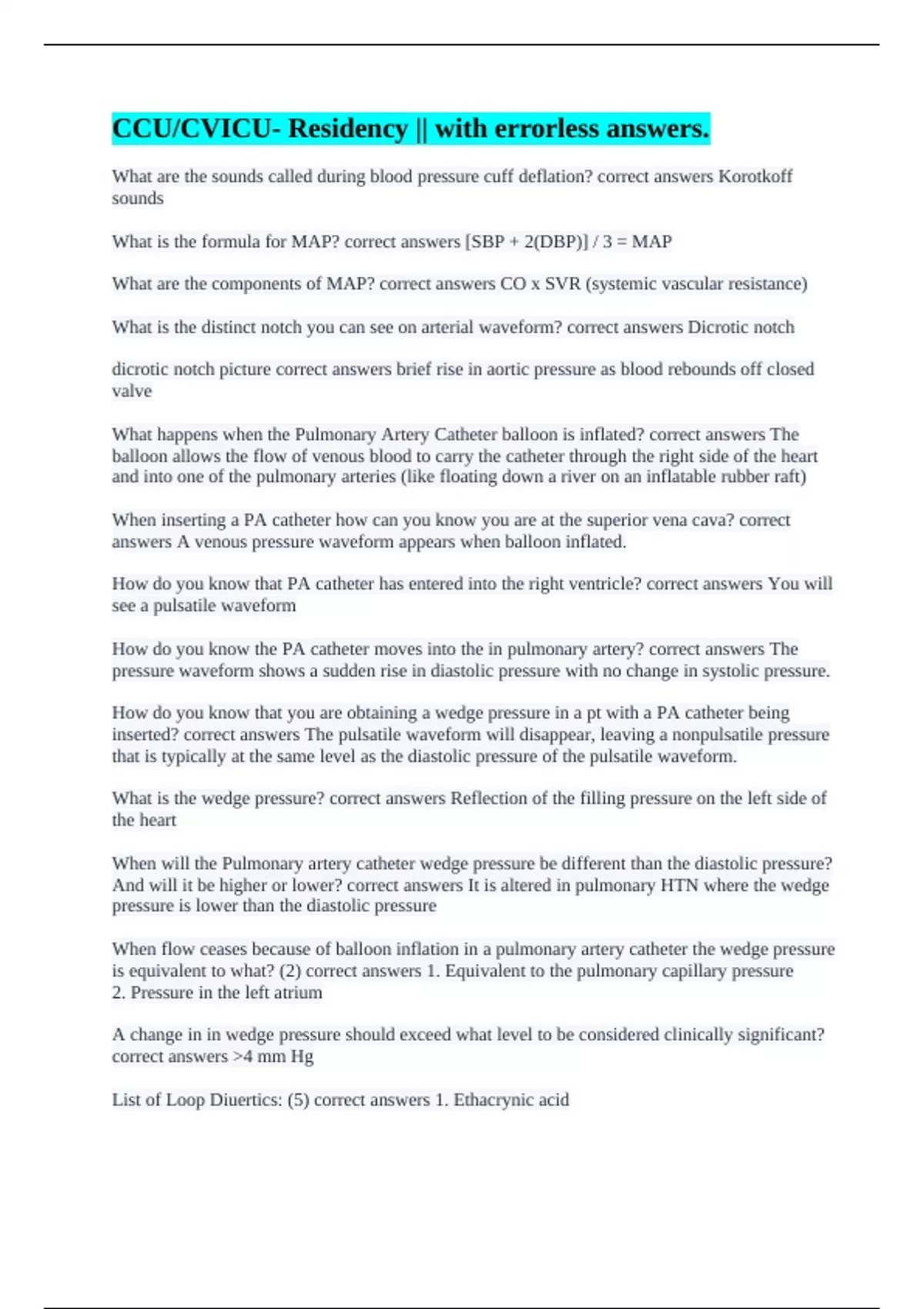 CVICU || all accurately answered.