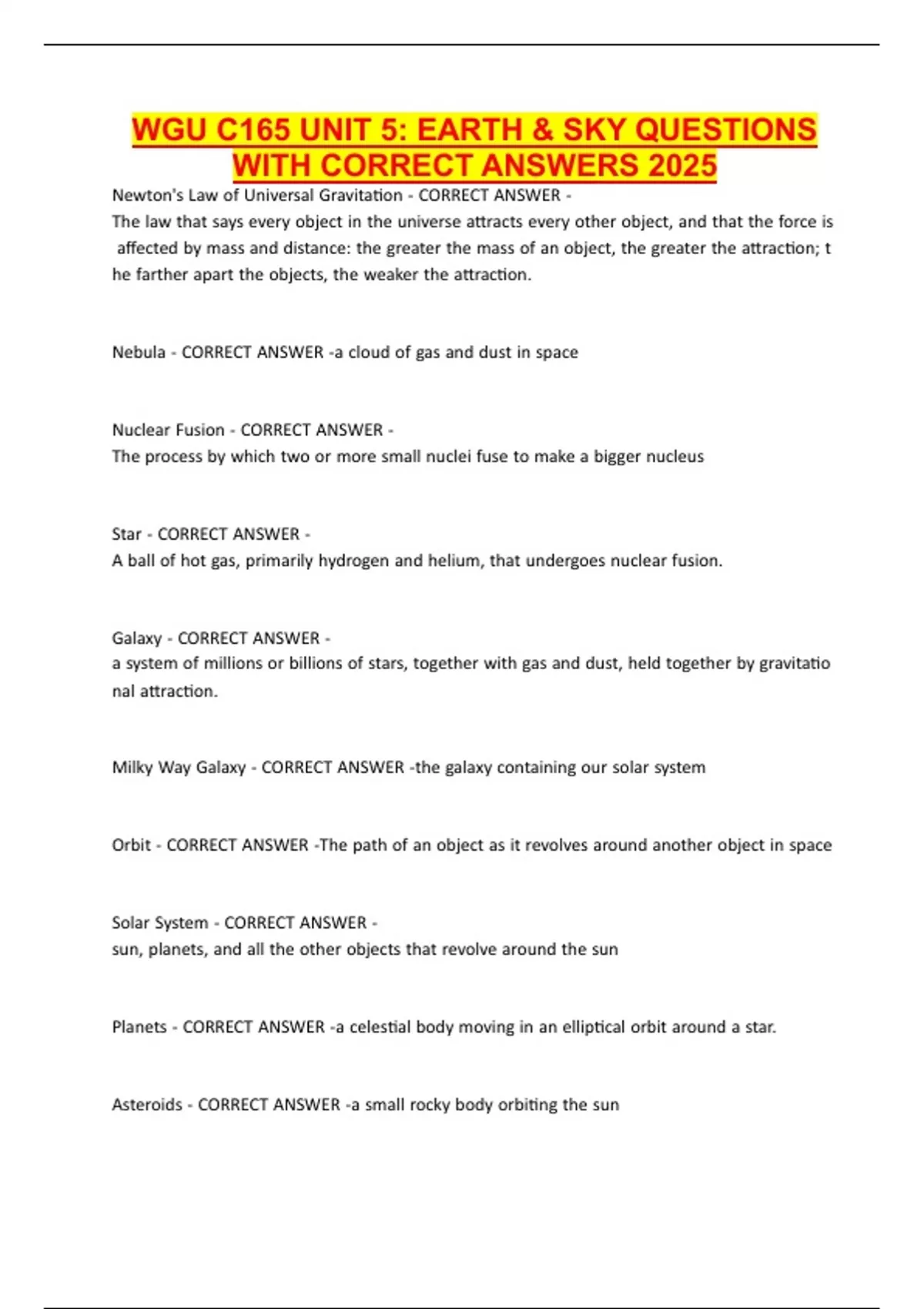 WGU C165 UNIT 5 EARTH & SKY QUESTIONS WITH CORRECT ANSWERS 2025