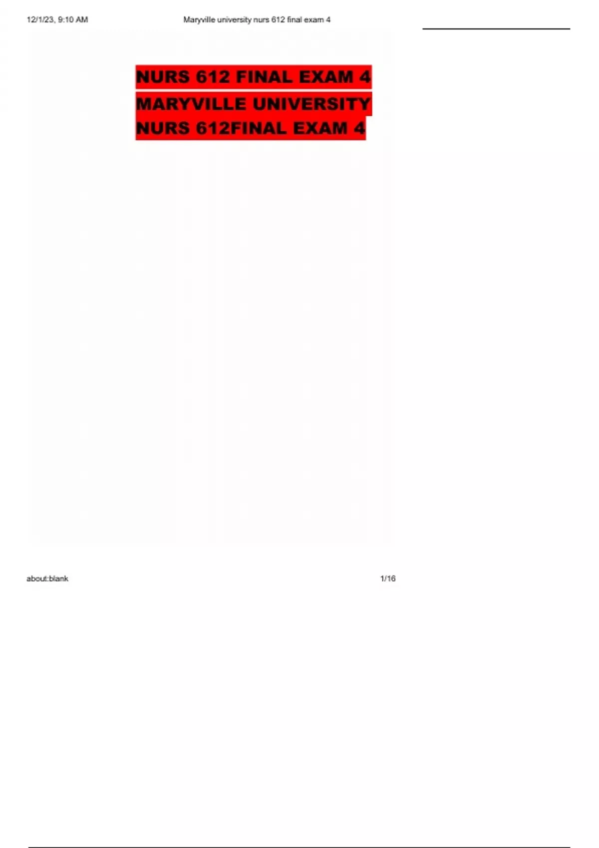 NURS 612 MARYVILLE EXAM 4 MC QUESTIONS AND ANSWERS LATEST DOWNLOAD 2023/2024 RATED A SCORE