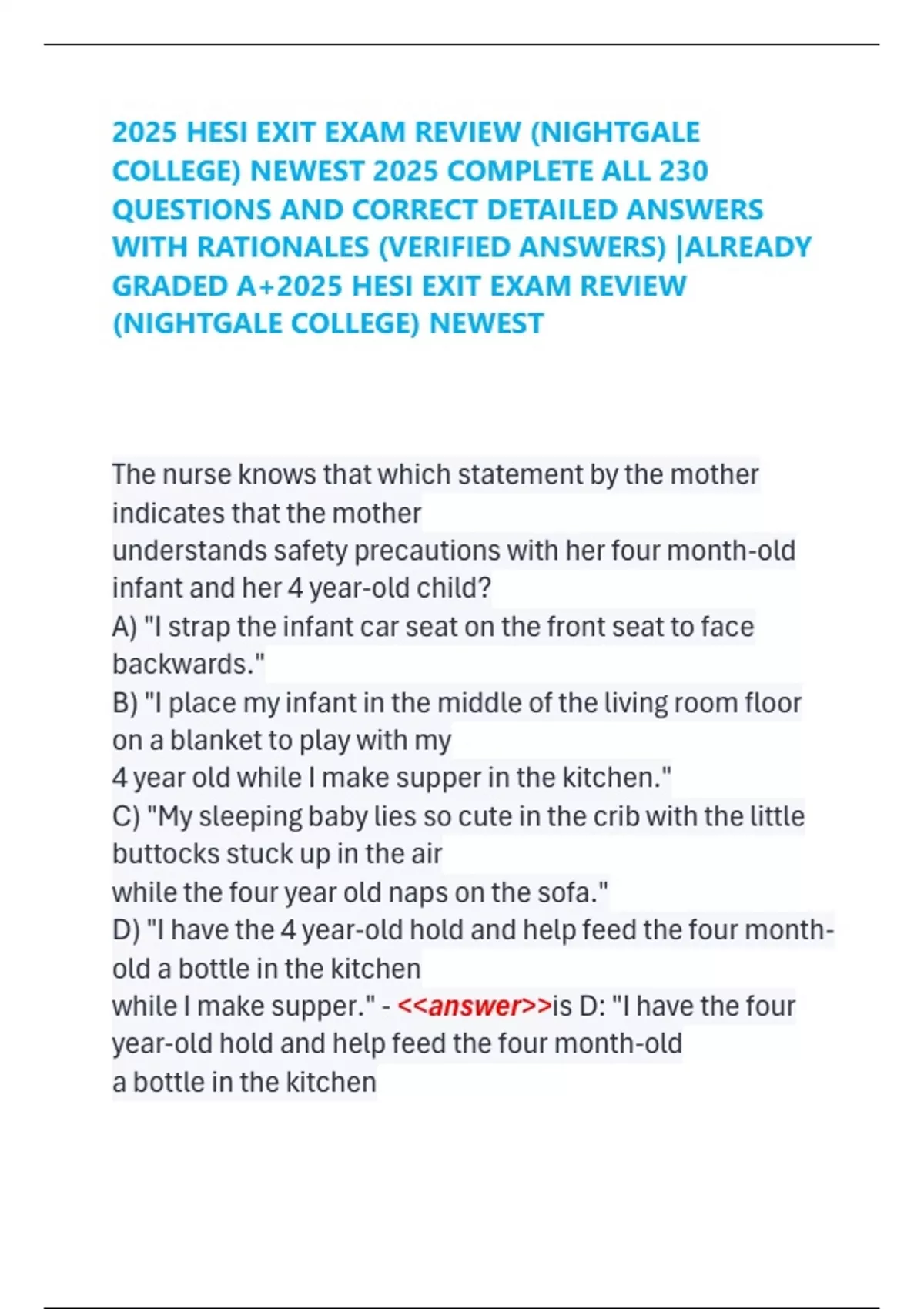2025 RN Hesi Med Surg Exam Test Bank With 400 Real Exam Prep Questions And Correct Answers With Detailed Rationales/ Hesi RN Med Surg Exam/ RN Hesi Medical Surgical A client with a productive cough has obtained a sputum specimen for culture as instructed. What is the best initial nursing action? - <<answer>>..Observe the color, consistency,
