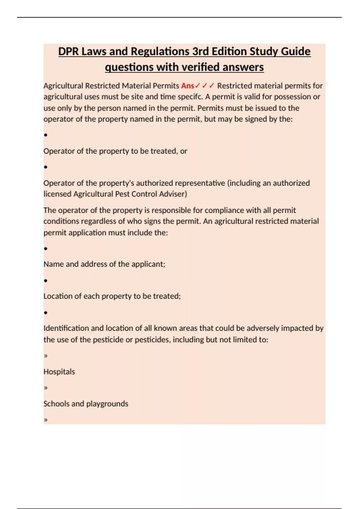 Comprehensive study set for the California Department of Pesticide Regulation (DPR) Laws and Regulations exam, covering pesticide use, licensing requirements, and regulatory compliance.