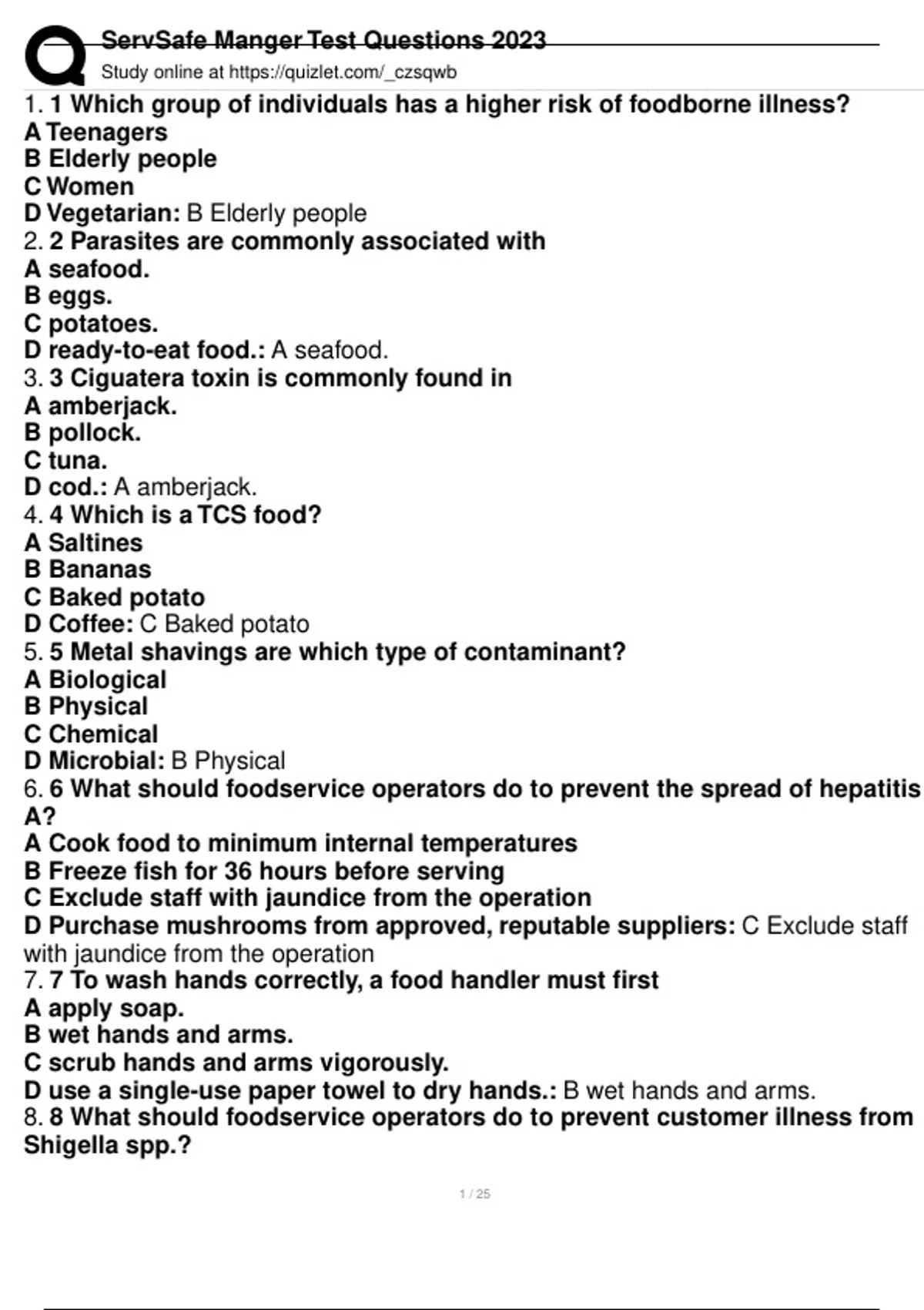 SERV Safe Manager & Alcohol Certification (2022–2025, USA) – Complete Exam Prep Package: Verified This all-in-one exam prep bundle includes verified questions and answers for the ServSafe Manager Exam (7th Edition, 2022–2025), ServSafe Alcohol Certificat