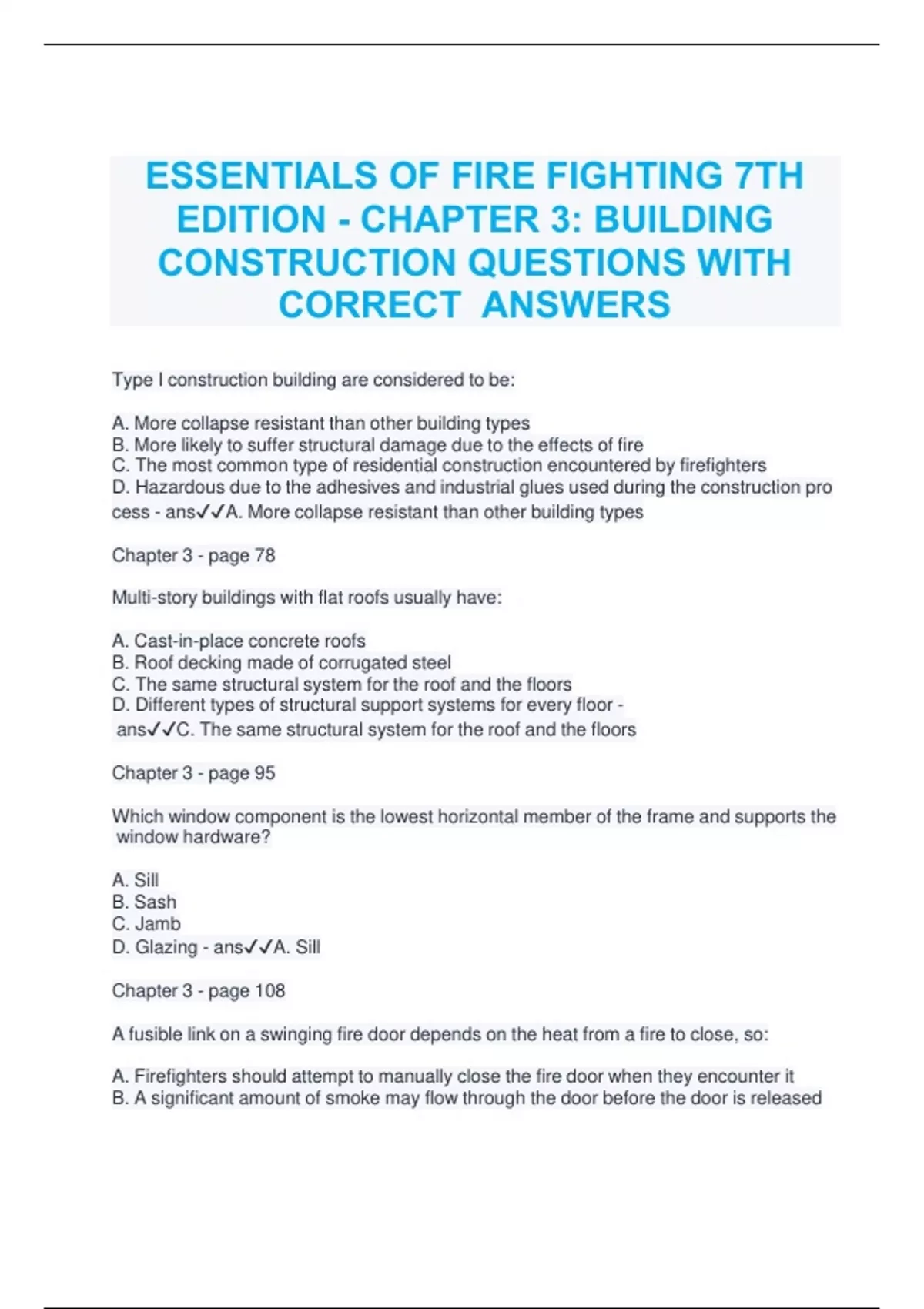 Essential of Fire Fighting 7th edition Questions and Correct Answers (all chapters
