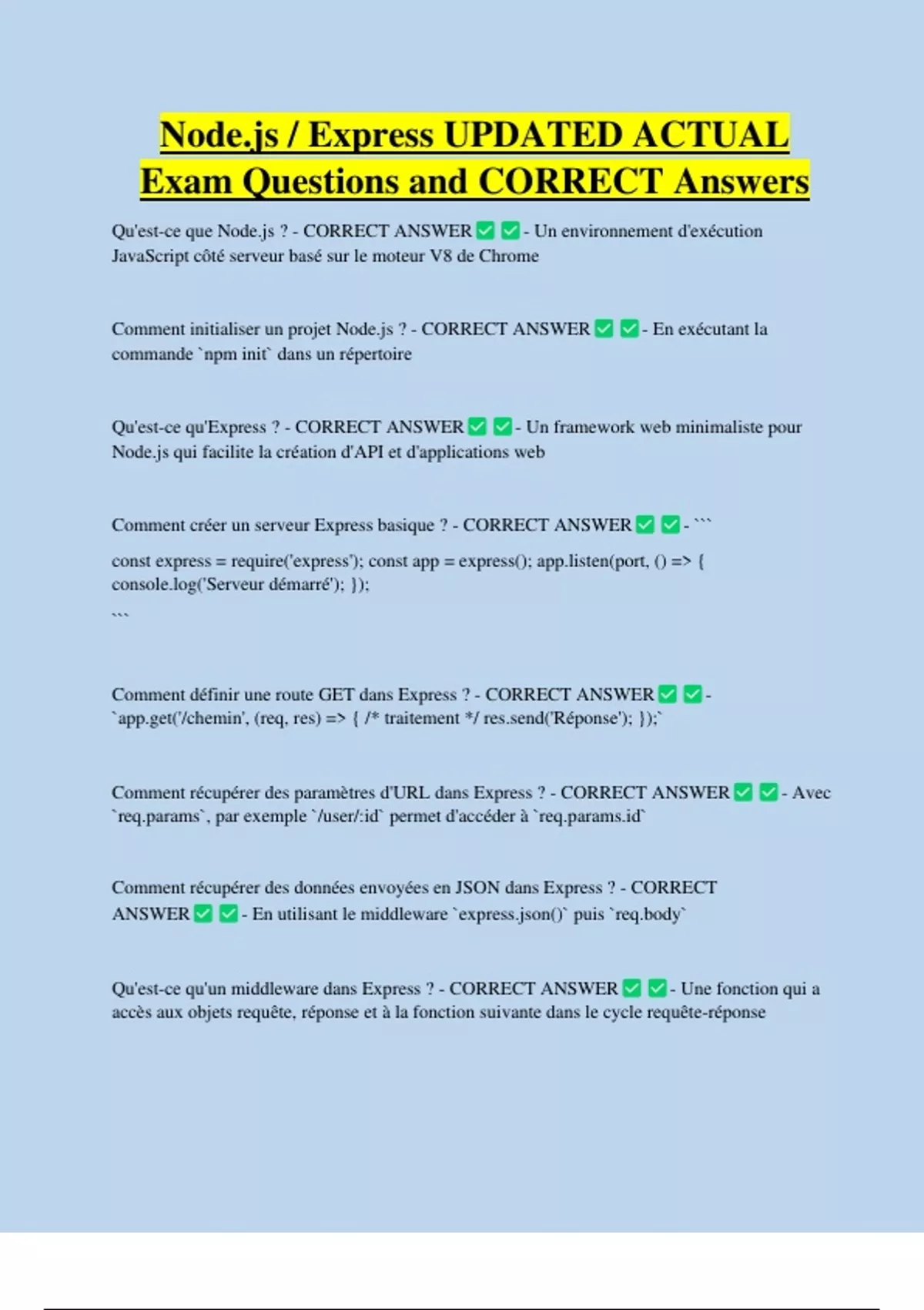 Introduction to Node.js and Express.js Framework UPDATED ACTUAL Exam Questions and CORRECT Answers