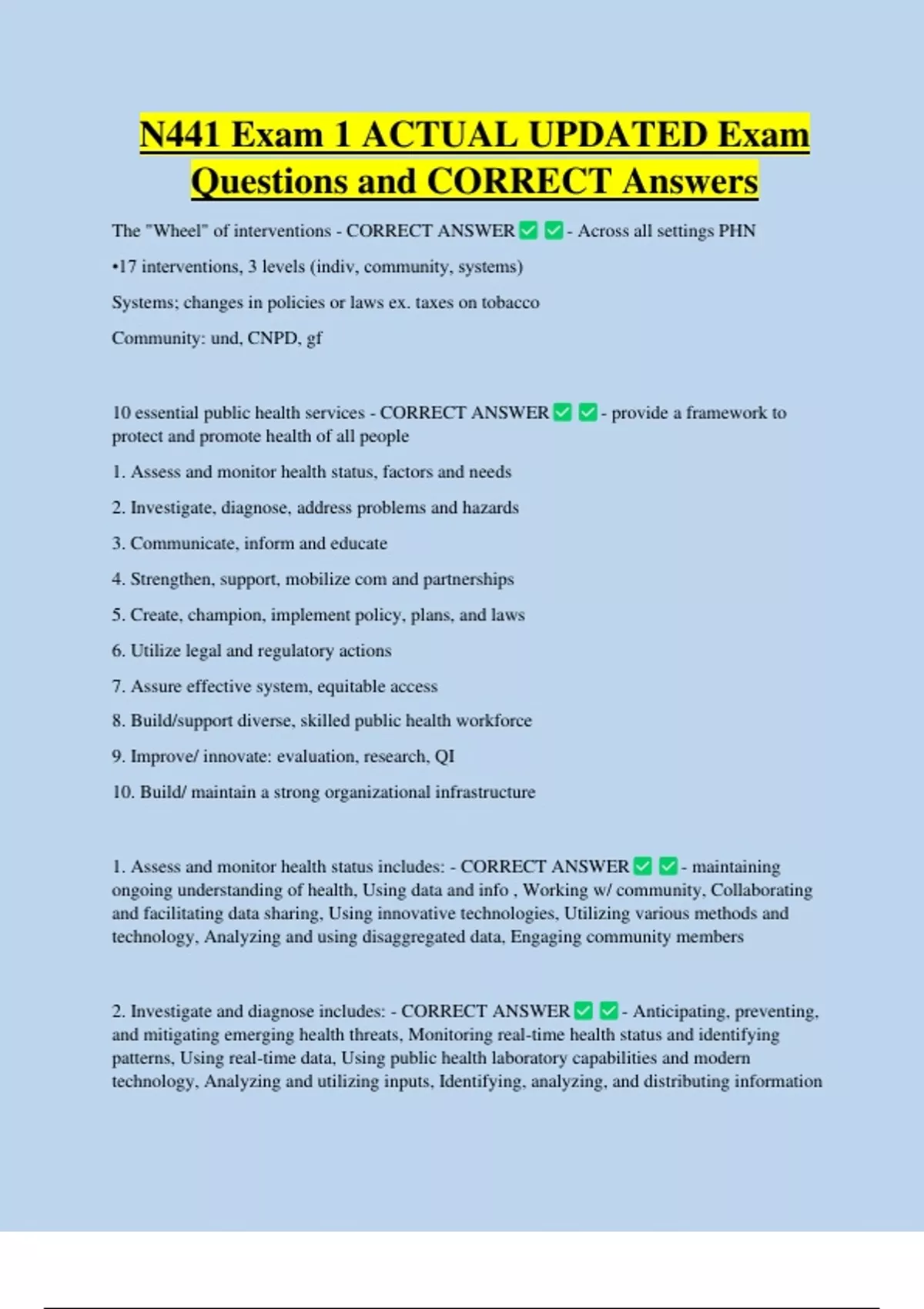 N441 Bundled Exam Questions WITH CORRECT Answers