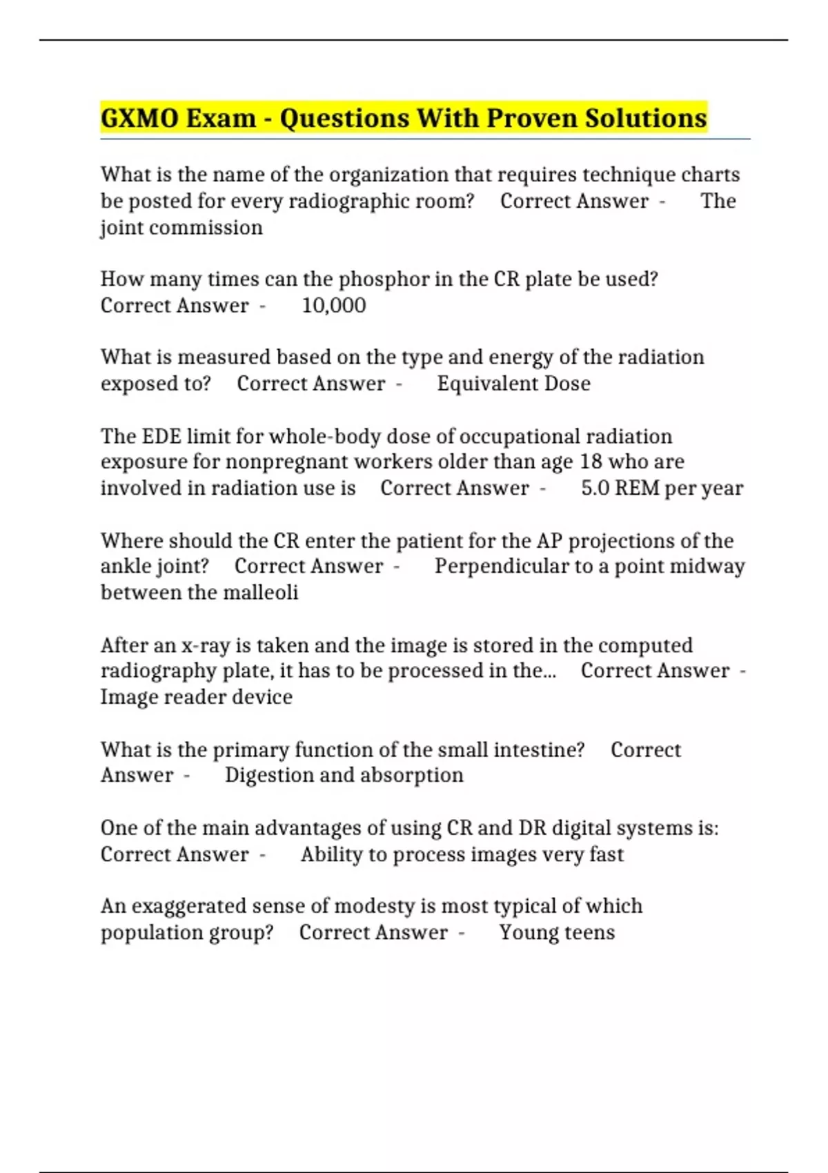 GXMO - Questions With Comprehensive Solutions