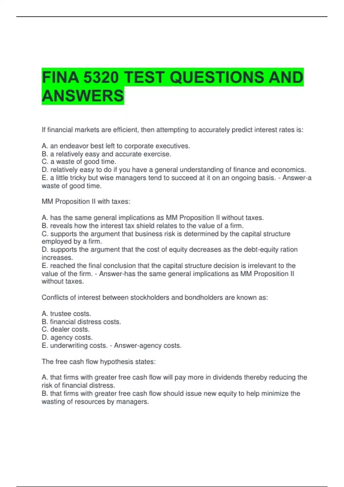 BUNDLE FOR FINA 5320 EXAM QUESTIONS WITH ALL CORRECT ANSWERS NEW UPDATE