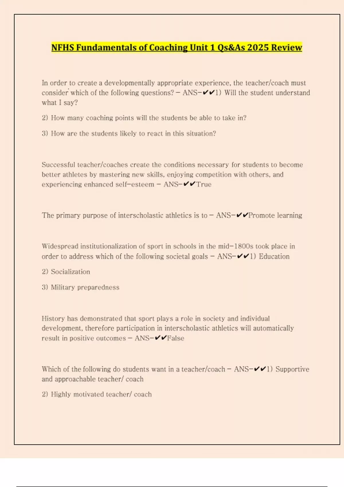 Coaching NFHS unit 1 and 2 (Social Sciences Exam Review), NFHS - Principles of Coaching Questions With Correct Answers 2025, NFHS chapter 3 - The Teacher/Coach And Interpersonal Skills Questions With 100% Correct Answers 2025, NFHS Coaching Final Question