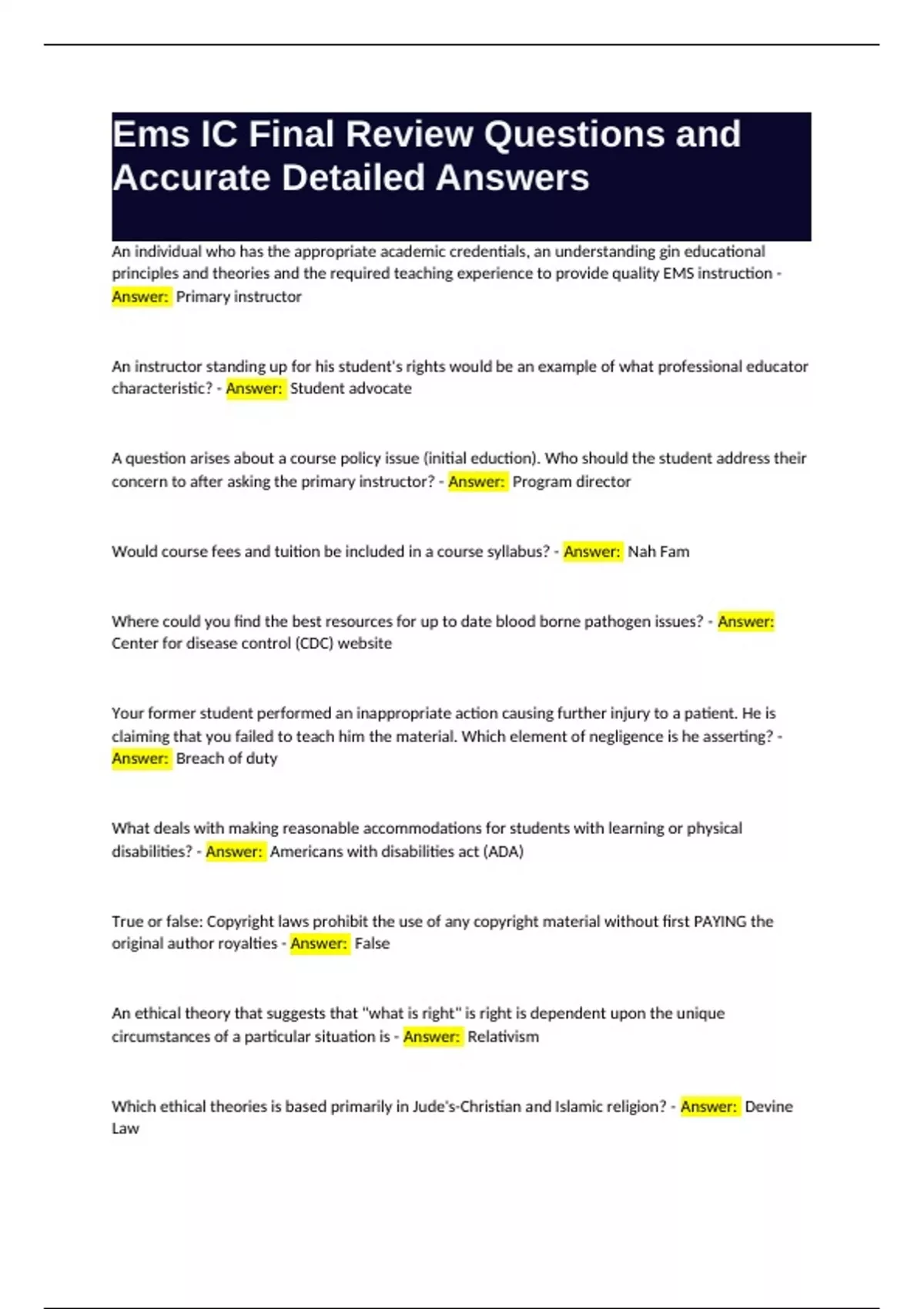 EMSIC – Michigan Test Study Guide Questions and Complete Answers