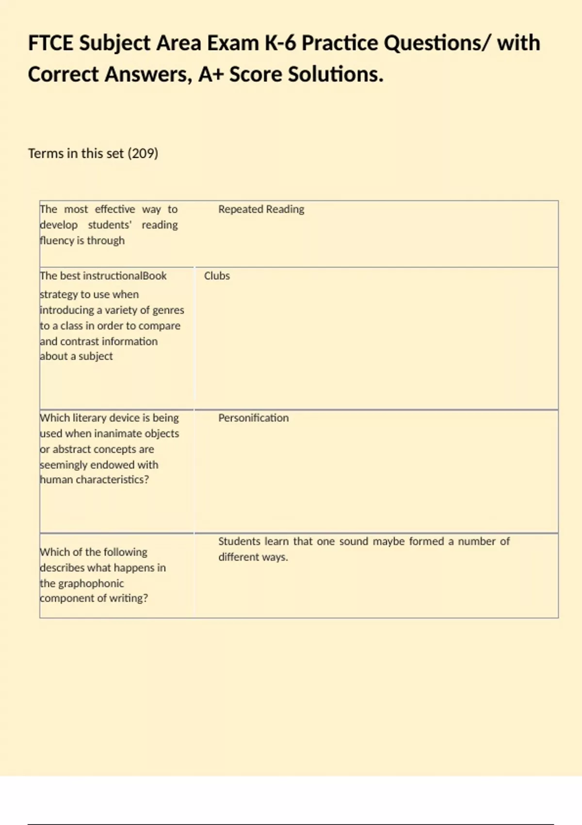 FTCE ESE Exceptional Student Education K-12/ (Sample Questions)/ Exam Key with 100% Correct Answers. Which organization is responsible for publishing a definition and classification manual that emphasizes systems of support for individuals with intellec 2 Exam (elaborations) FTCE Professional Education Practice Test #1/ Strategies Review of Key Qu