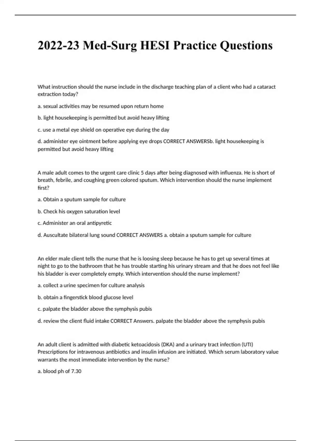 2023 Med-Surg HESI Practice Questions And answers