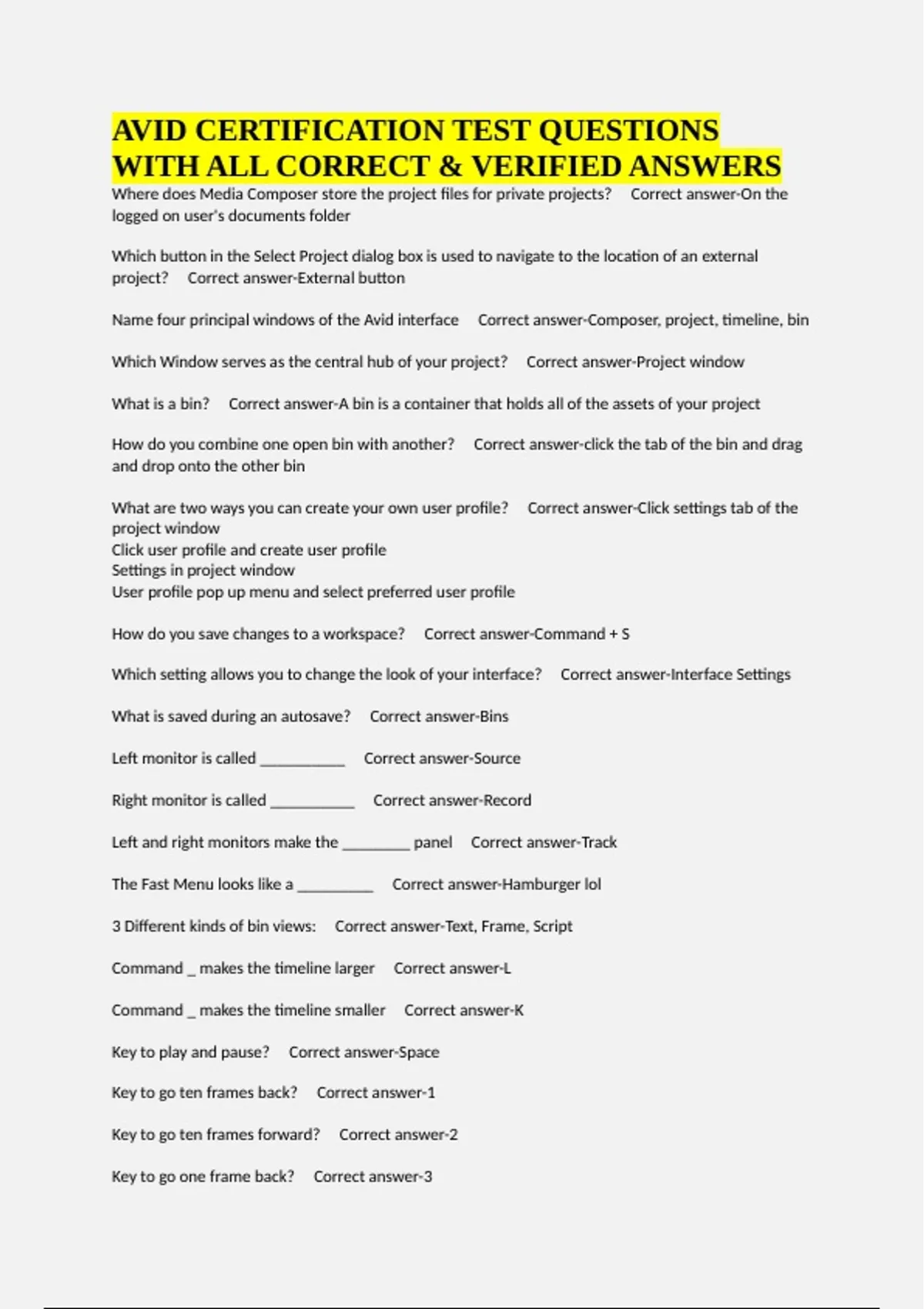 PACKAGE DEAL FOR AVID EXAMS