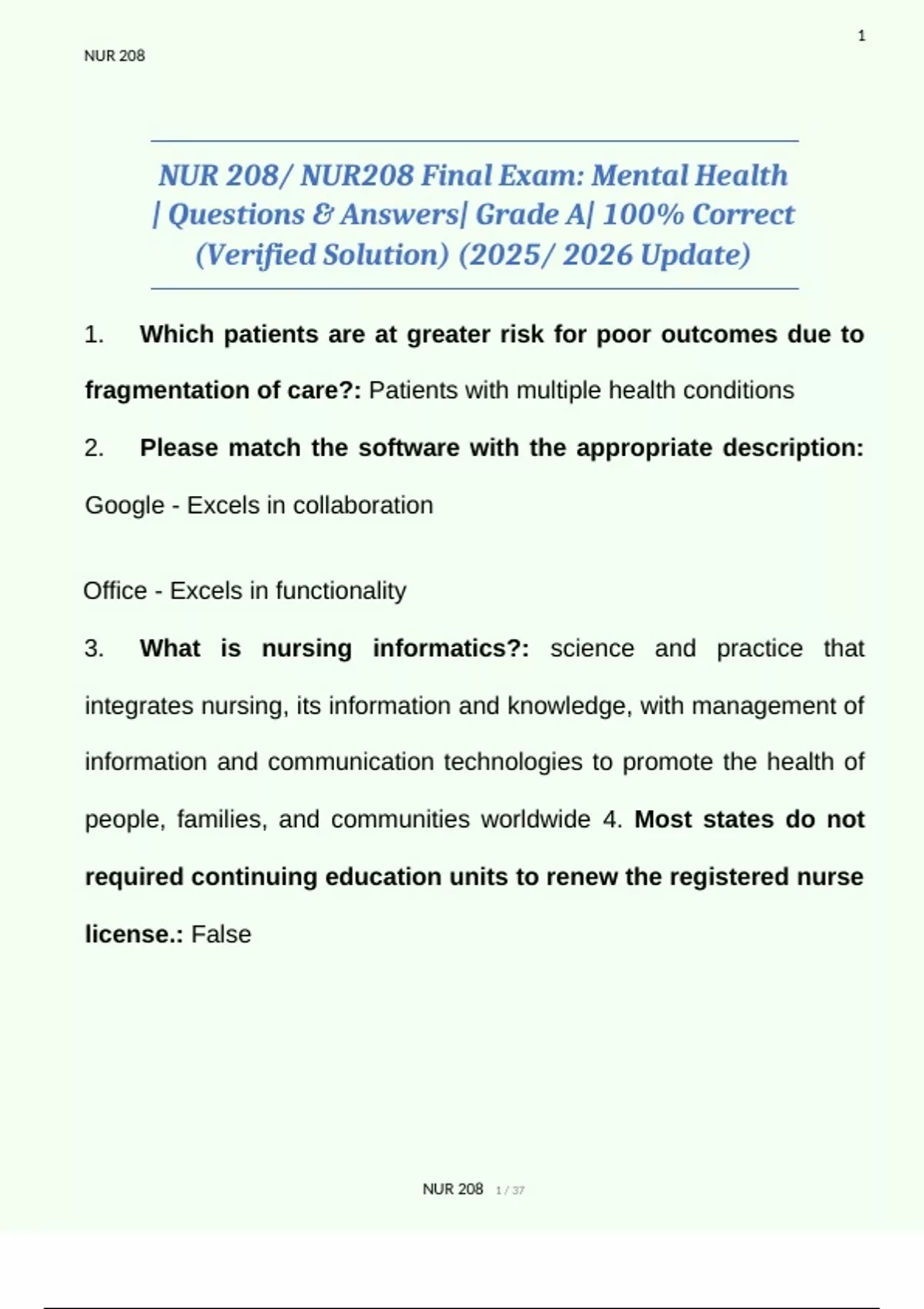 NUR 208/ NUR208 EXAMs 1, 2, 3 & FINAL STUDY (2025/ 2026 Update) | Questions & Answers| Grade A | PACKAGE DEALNUR 208/ NUR208 EXAMs 1, 2, 3 & FINAL STUDY (2025/ 2026 Update) | Questions & Answers| Grade A | PACKAGE DEALNUR 208/ NUR208 EXAMs 1, 2, 3 & FINAL STUDY (2025/ 2026 Update) | Questions & Answers| Grade A | PACKAGE DEALNUR 208/ NUR208 EXAM