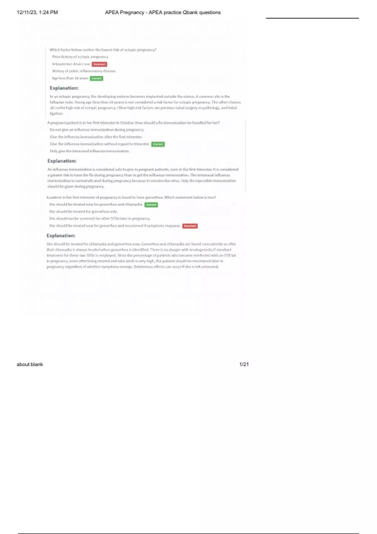 APEA Pregnancy APEA practice Qbank questions and answers.