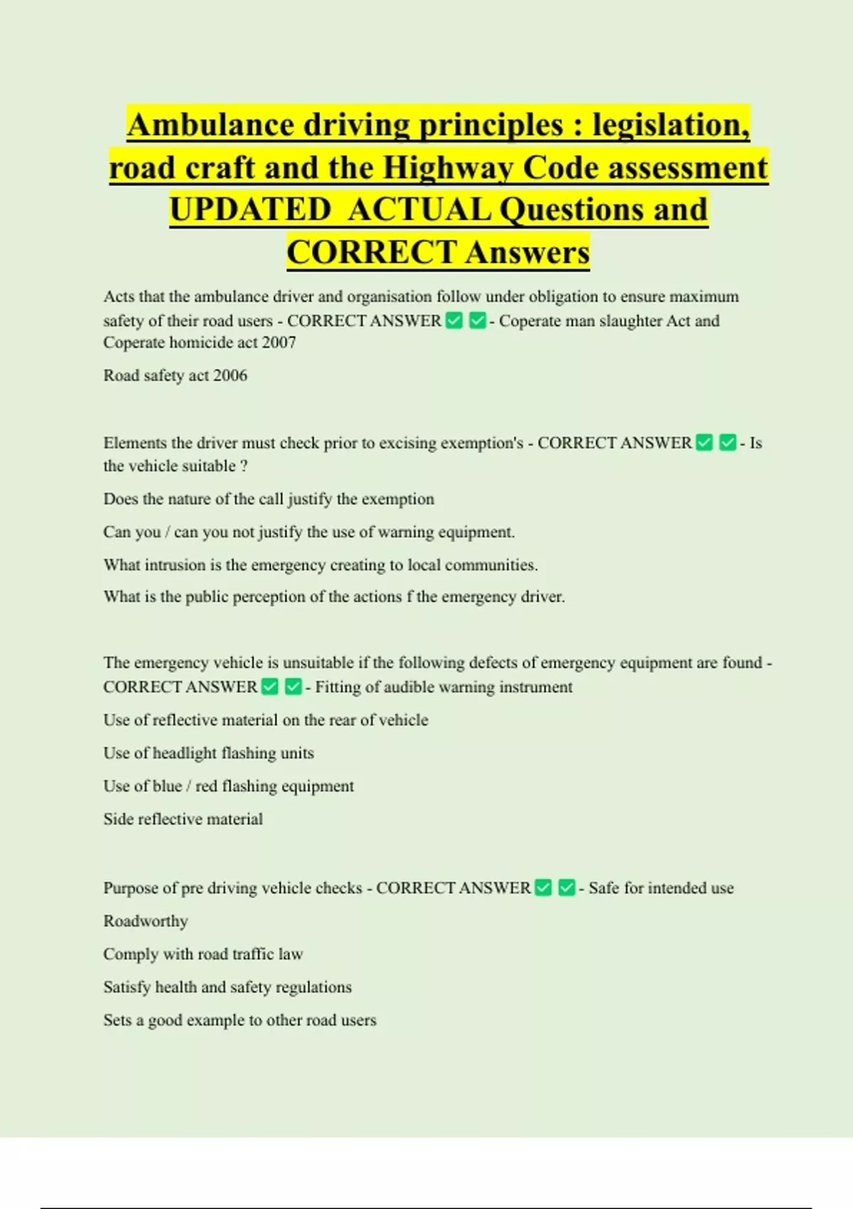 Roadcraft Bundled Exam Questions WITH CORRECT Answers