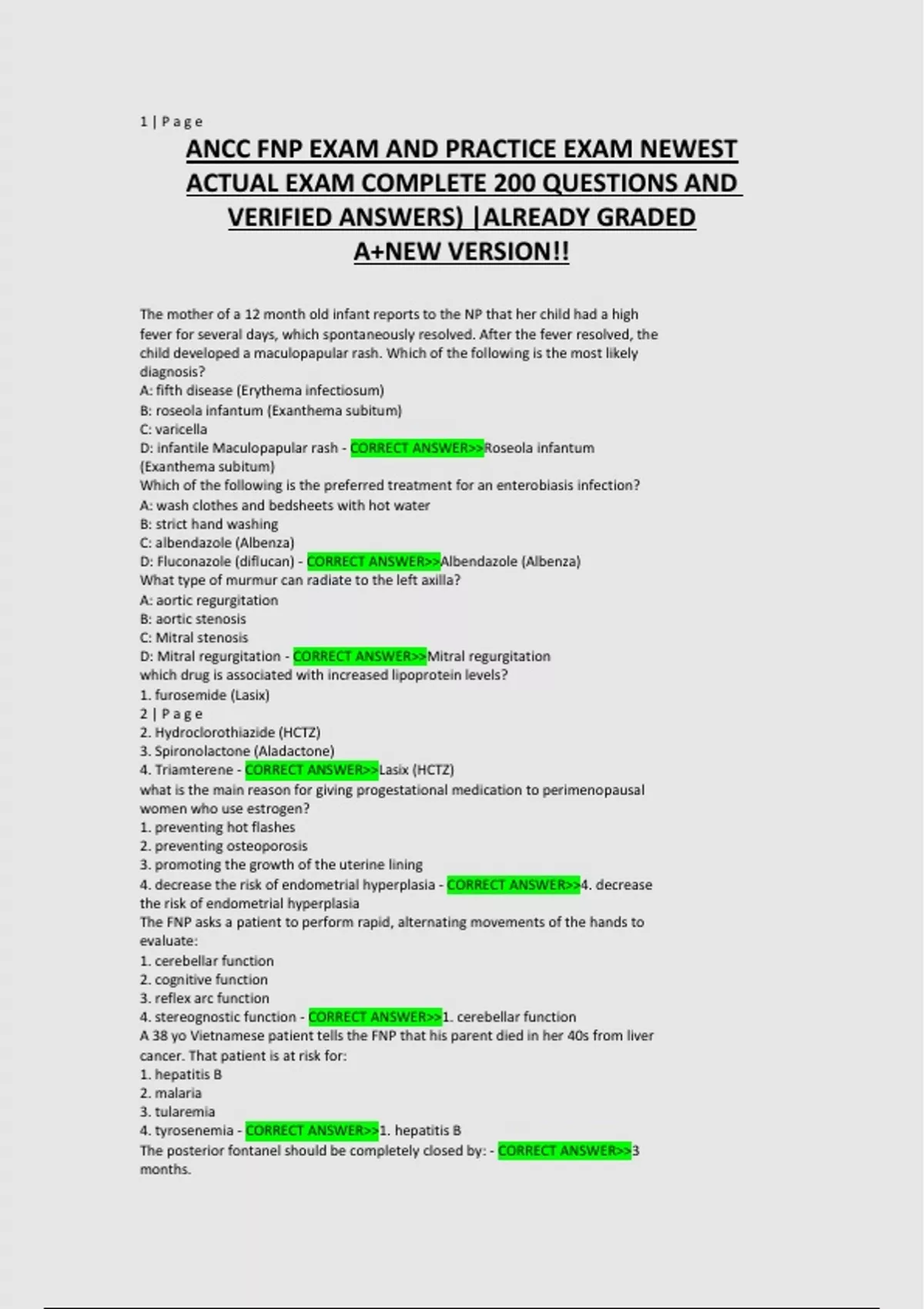 ANCC FNP EXAM AND PRACTICE EXAM NEWEST ACTUAL EXAM COMPLETE 200 QUESTIONS AND VERIFIED ANSWERS) |ALREADY GRADED A+NEW VERSION!