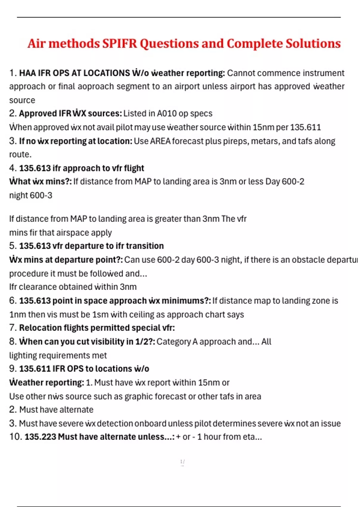 Air Methods – Part 135 Study Guide with 100% Verified Questions and Answers – A Graded Resource – Latest 2025/2026 Air Methods Critical Care Paramedic Exam – Possible Questions with Complete Solutions | Full Preparation Guide Air Methods Critical Care Exam – Test Questions and Answers | 100% Guaranteed Pass Study Resource Air Methods Critical Care