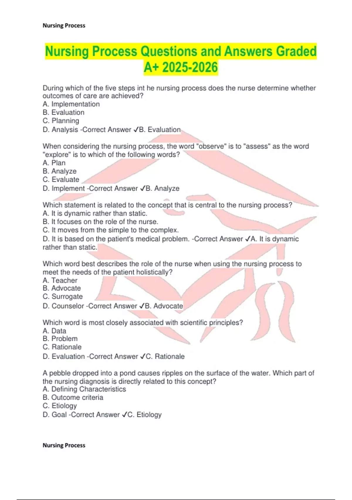 BUNDLED Nursing Process Exam Study Guide Questions with Correct Answers 2025