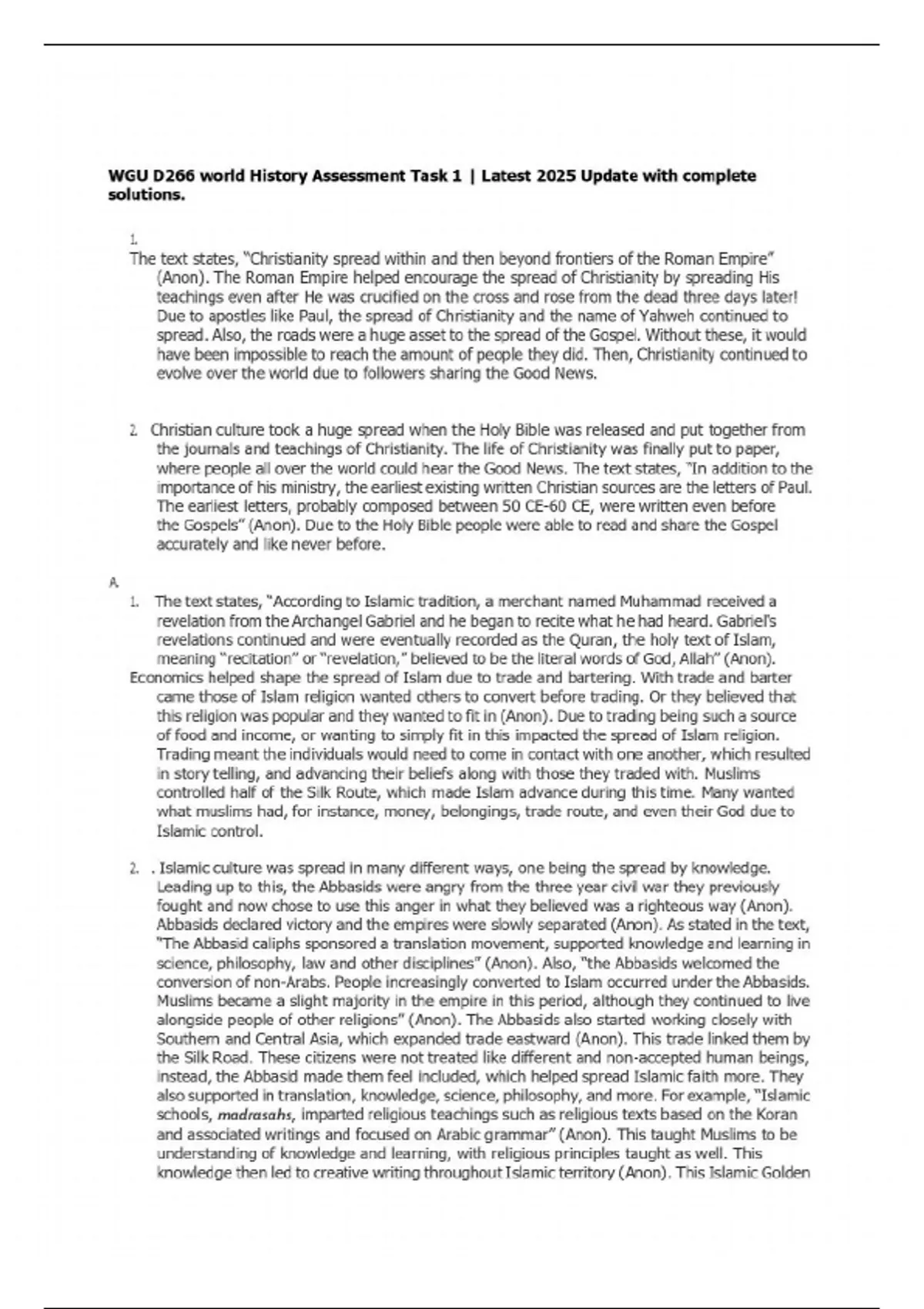 WGU D266 world History Assessment Task 1 WGU D266 Task 2:HUMAN ACTIONS IN THE SPREAD OF DISEASE WGU D266 Task 3