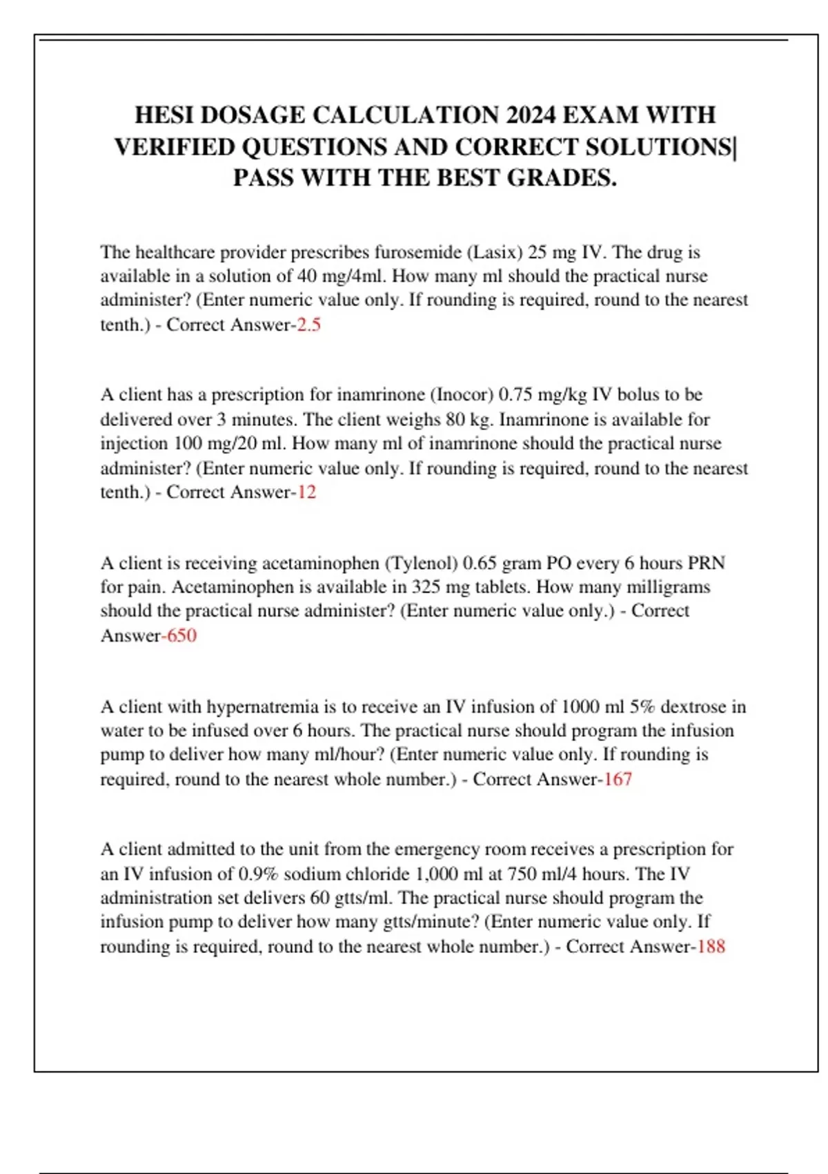 DOSAGE CALCULATIONS ATI AND HESI EXAMS BUNDLE 2025.