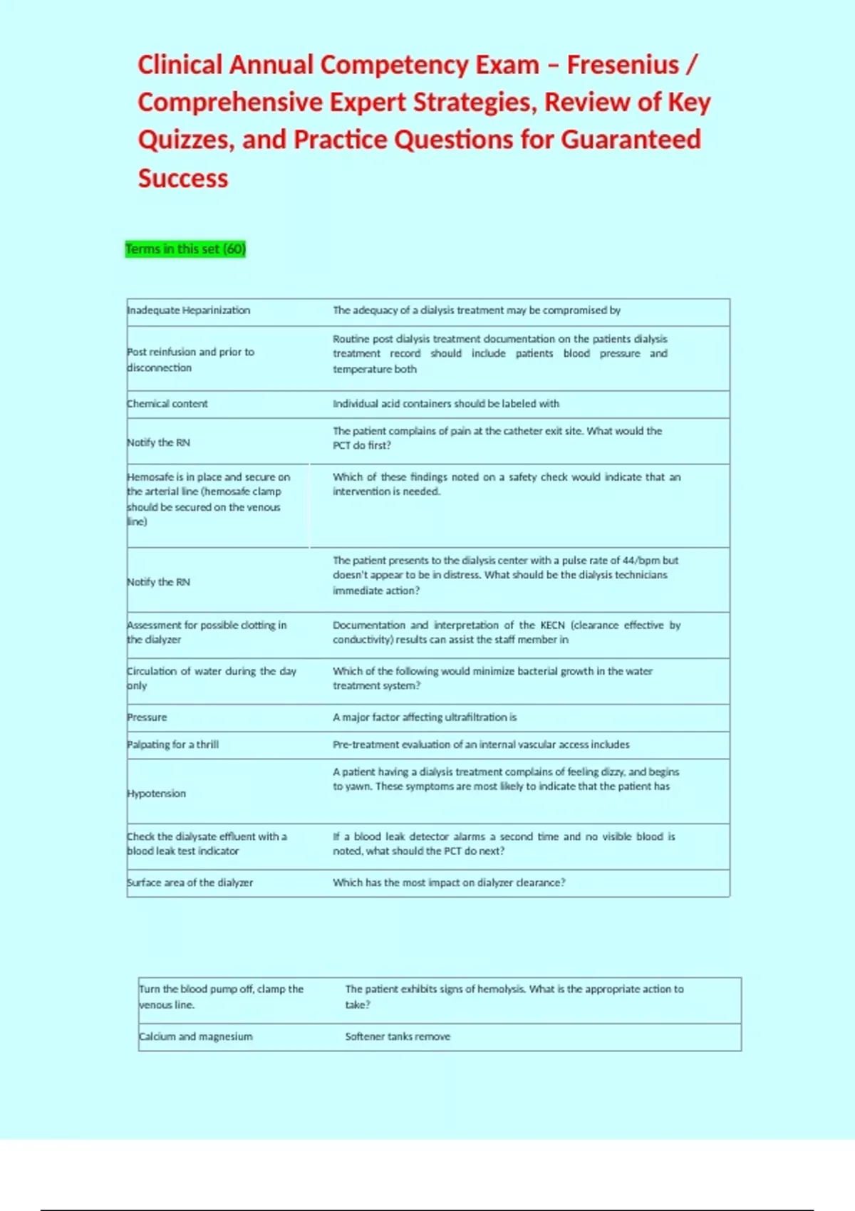 1 Exam (elaborations) Certified Clinical Medical Assistant Exam / Comprehensive Update Actual Questions & Answers (A+ Guide Solution) 2 Exam (elaborations) Clinical Annual Competency Exam – Fresenius / Comprehensive Expert Strategies, Review of Key Quizzes, and Practice Questions for Guaranteed Success 3 Exam (elaborations) NHA: CERTIFIED CLINICA