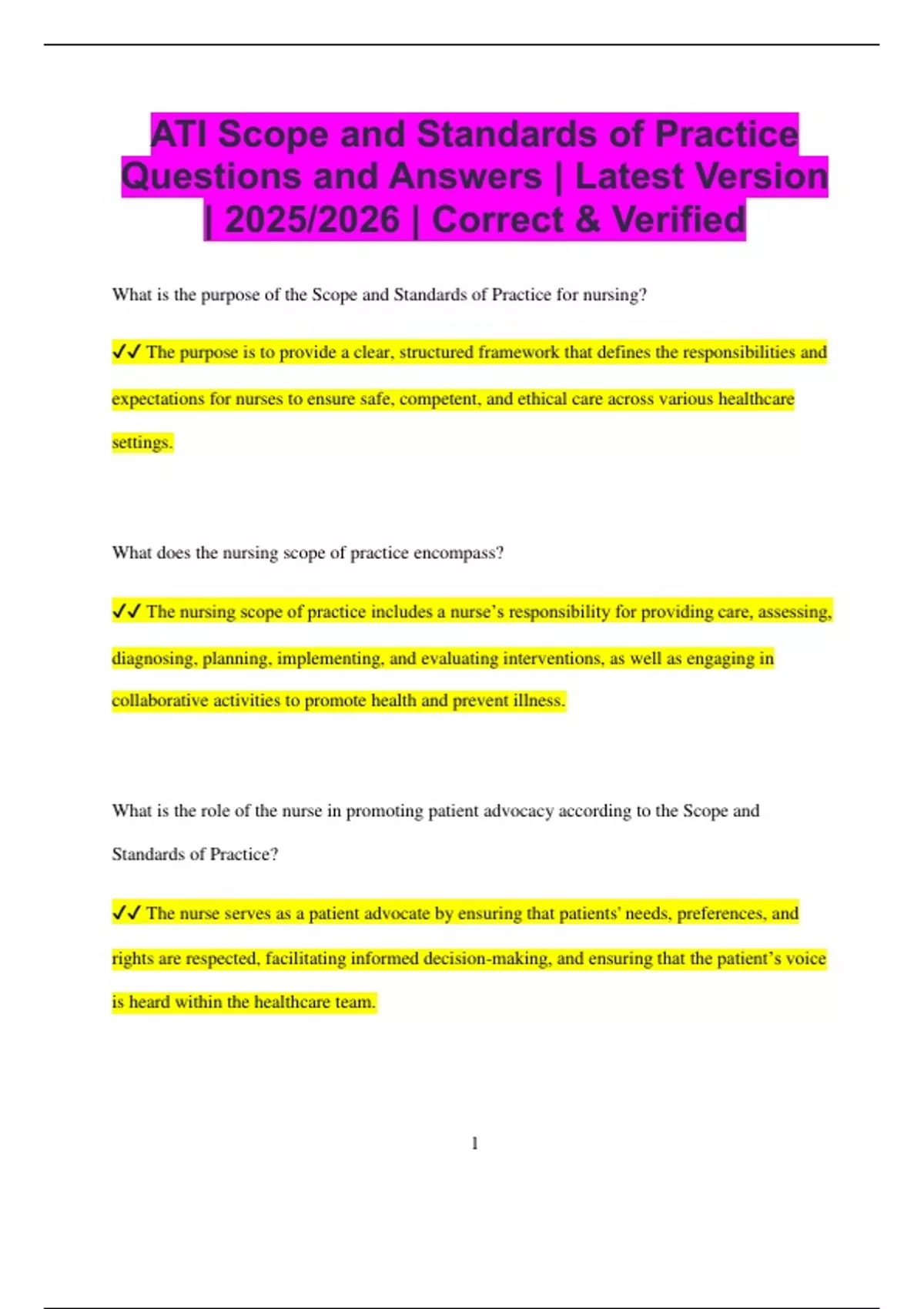 ATI Scope and Standards of Practice Bundled Exams Questions and Answers Latest Versions (2025/2026) (Complete and Accurate)