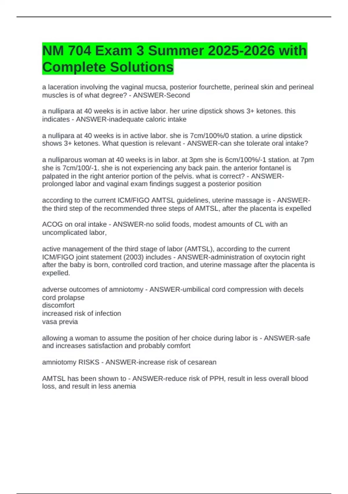1 Exam (elaborations) NM 704 Exam 1 Graded A+ 2 Exam (elaborations) NM 704 Exam 2 Latest Updated- Solved 3 Exam (elaborations) NM 704 Exam 3 Graded A+ (Verified) 4 Exam (elaborations) NM 704 Exam 3 Module 6 Graded A+ 5 Exam (elaborations) NM 704 Exam 3 Summer with Complete Solutions