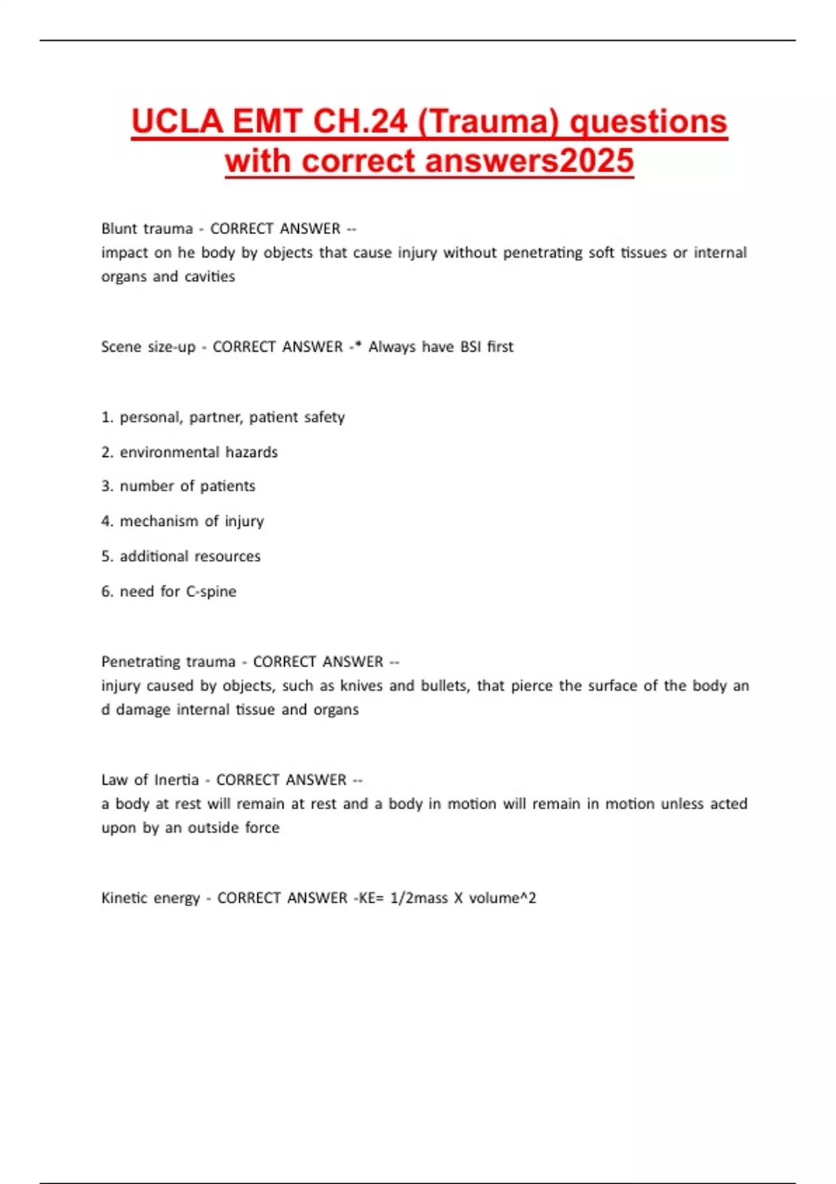 UCLA EMT Trauma Exam Questions with 100% Correct Answers | Latest Version (2025/2026) Expert Verified