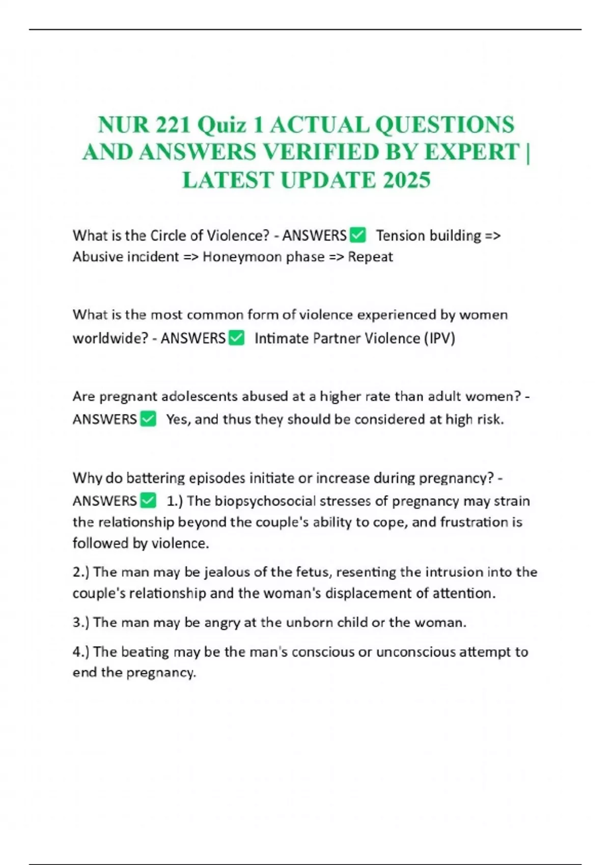 NUR 221 Quiz 1 ACTUAL QUESTIONS AND ANSWERS VERIFIED BY EXPERT | LATEST UPDATE 2025