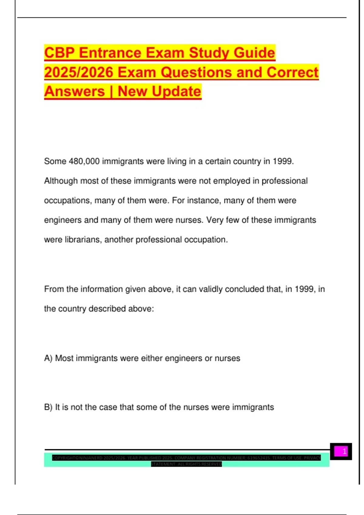 CBP Entrance Exam Study Guide 2025/2026 Exam Questions and Correct Answers | New Update