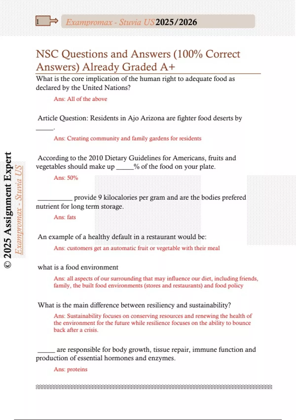 NSC chapter 1 Questions and Answers (100% Correct Answers) Already Graded A+