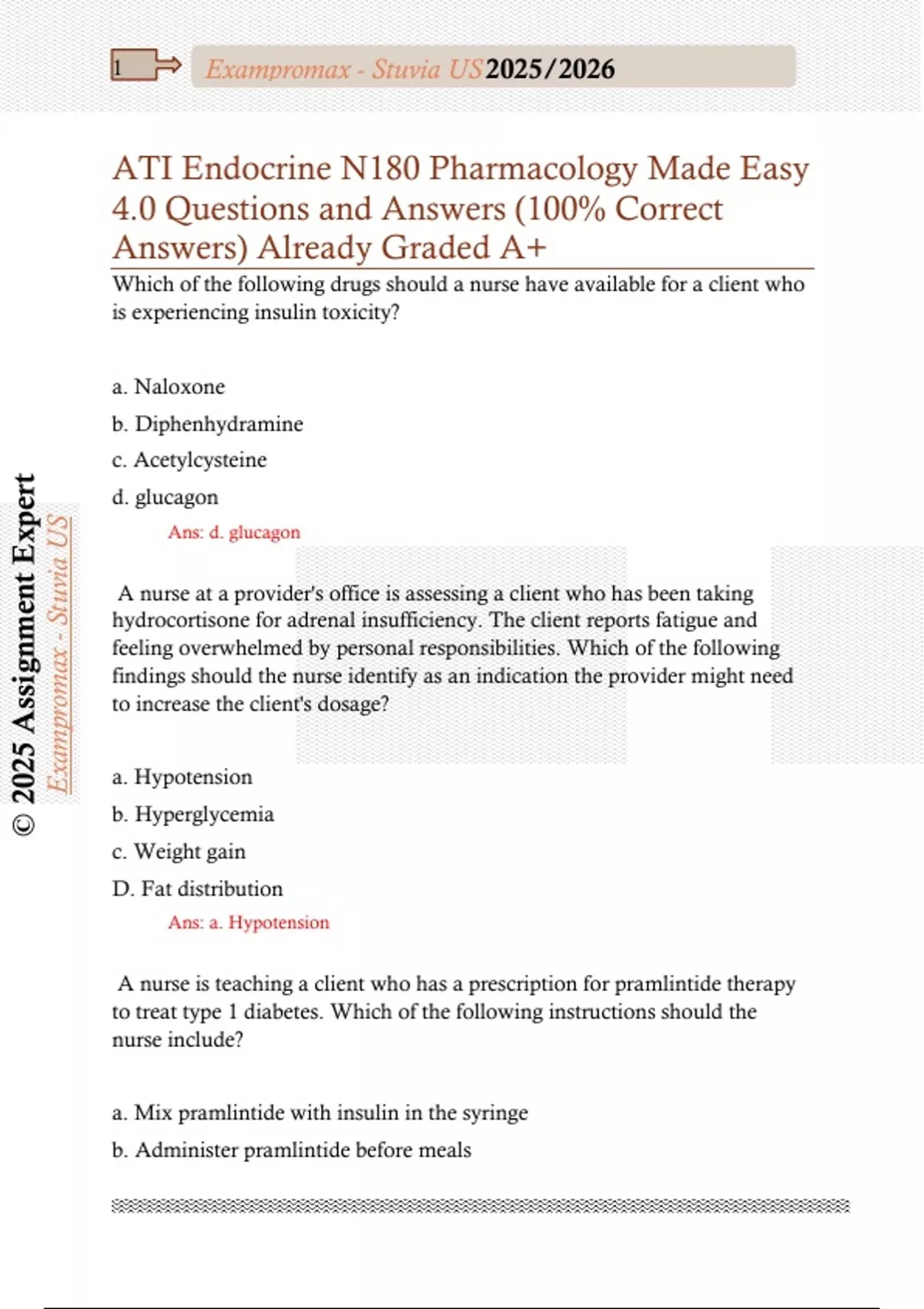 ATI Endocrine N180 Pharmacology Made Easy 4.0 Questions and Answers (100% Correct Answers) Already Graded A+