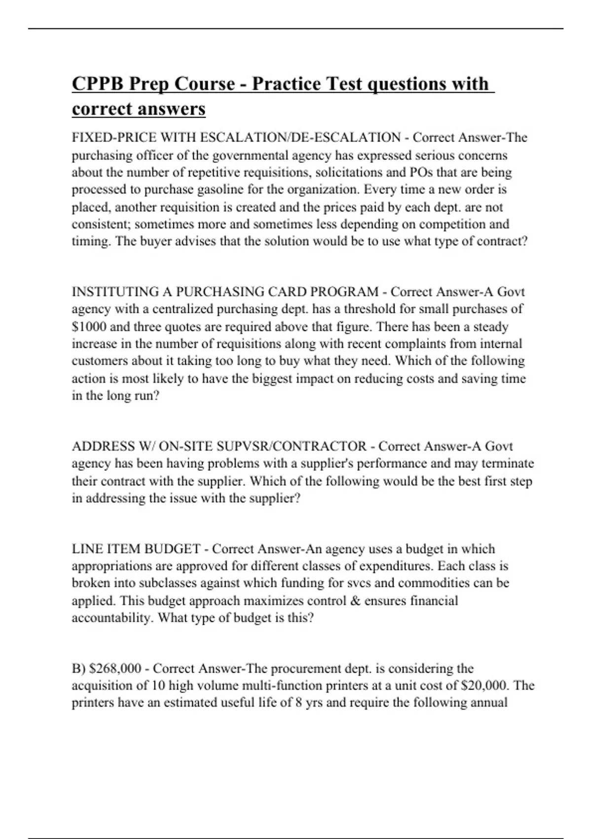 CPPB PRACTICE TEST (50 QUESTIONS) with correct answers