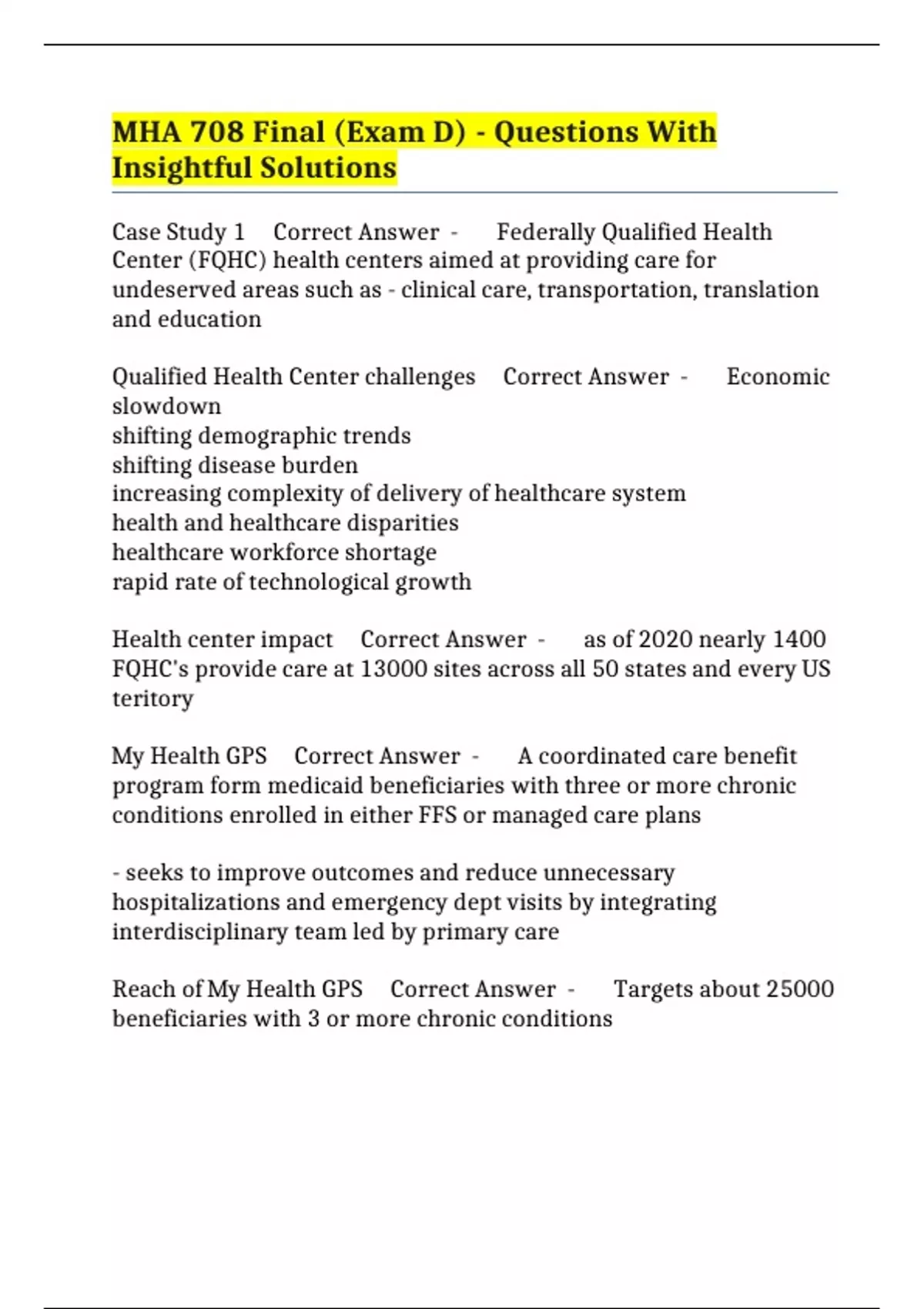 VALUE PACK::- MHA 708 EXAMS