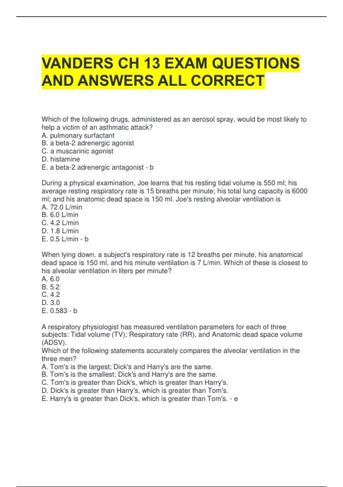 BUNDLE FOR VANDERS EXAM QUESTIONS AND ANSWERS ALL CORRECT
