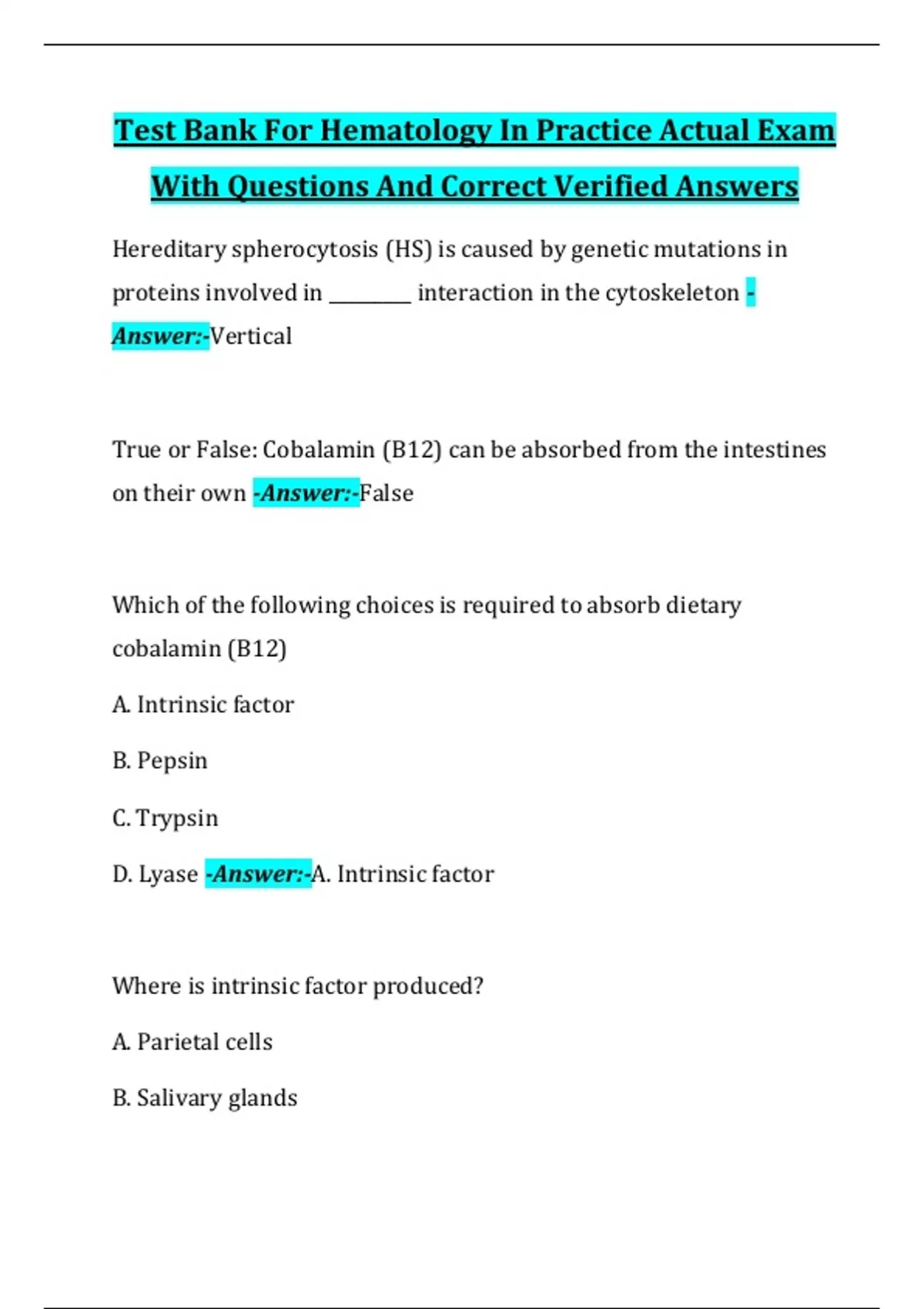 HEMATOLOGY INPRACTICE HEMATOLOGY MED SURG MED SURG ATI HEMATOLOGY