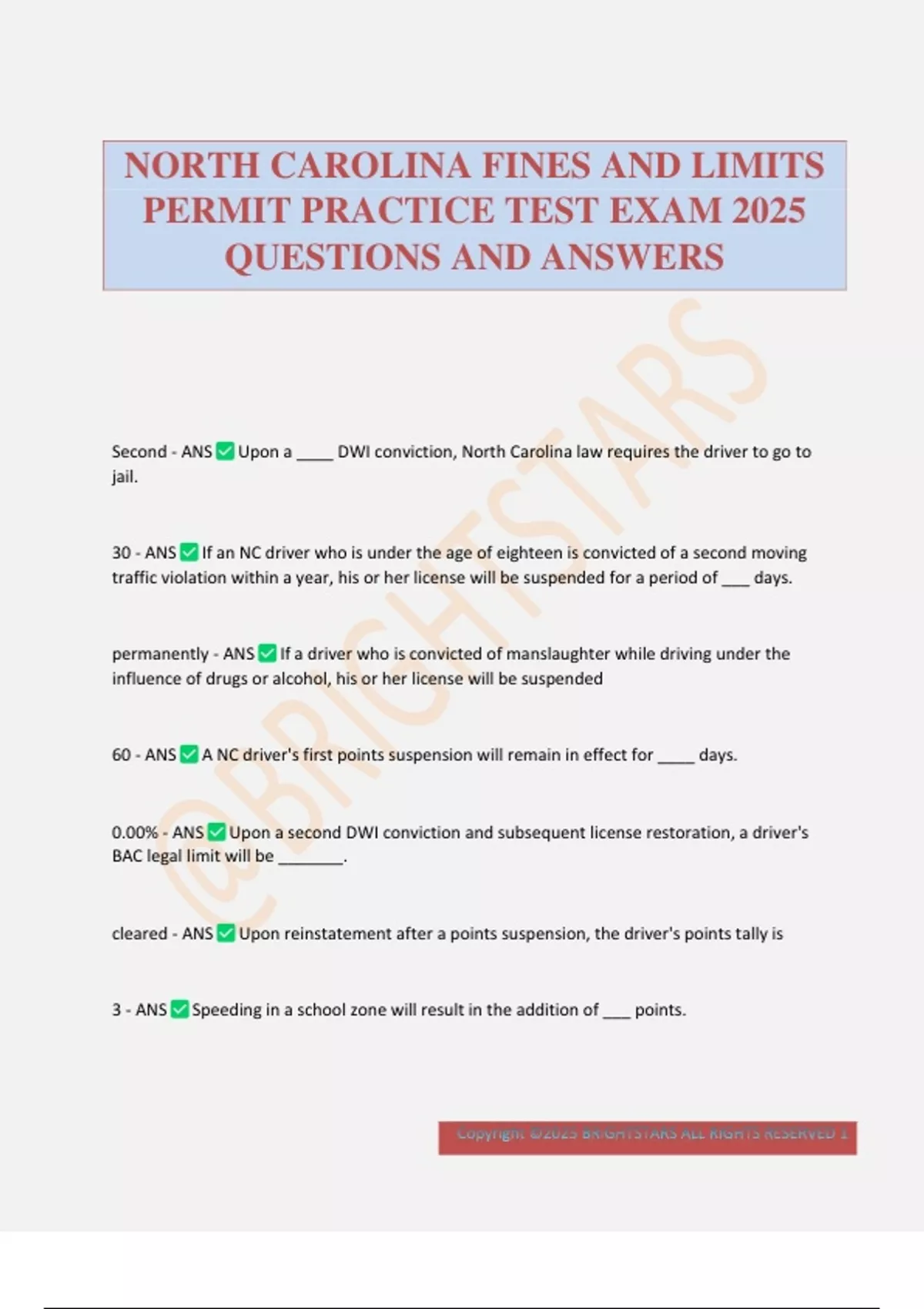 NC DRIVERS ED 100 EXAM 2025 QUESTIONS AND ANSWERS