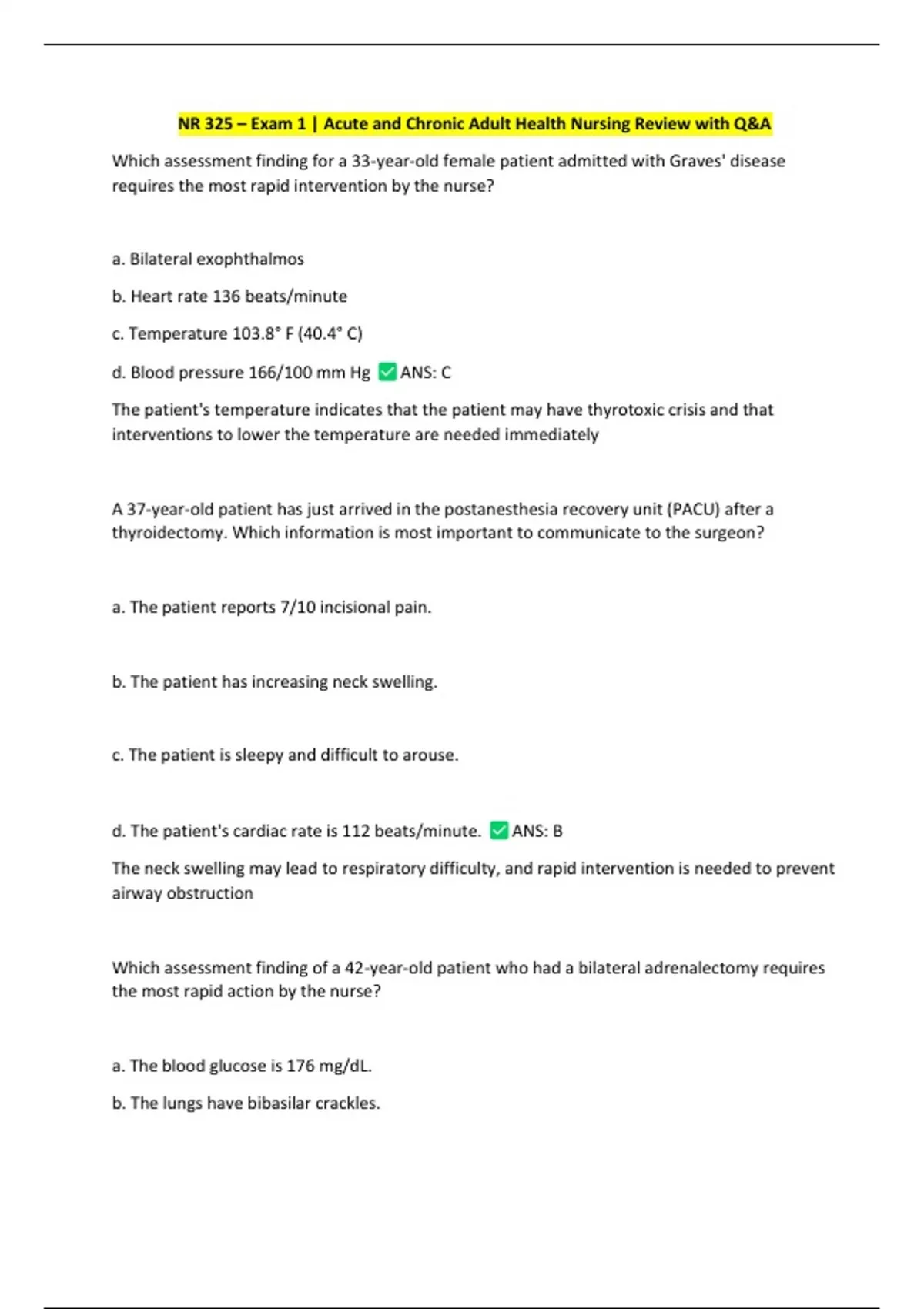 Exam (elaborations) NR 325 – Exam 1 Comprehensive Study Guide | Chamberlain University | Academic Year 2024–2025 | Renal, Endocrine, and Diabetes Pharmacology & Pathophysiology Review 5 Exam (elaborations) NR 325 – Exam 2 | Hepatic, Neurological, and Immune Disorders – Clinical Summary & CM Guide 6 Exam (elaborations) NUR 325 – Exam 2 Review Quest
