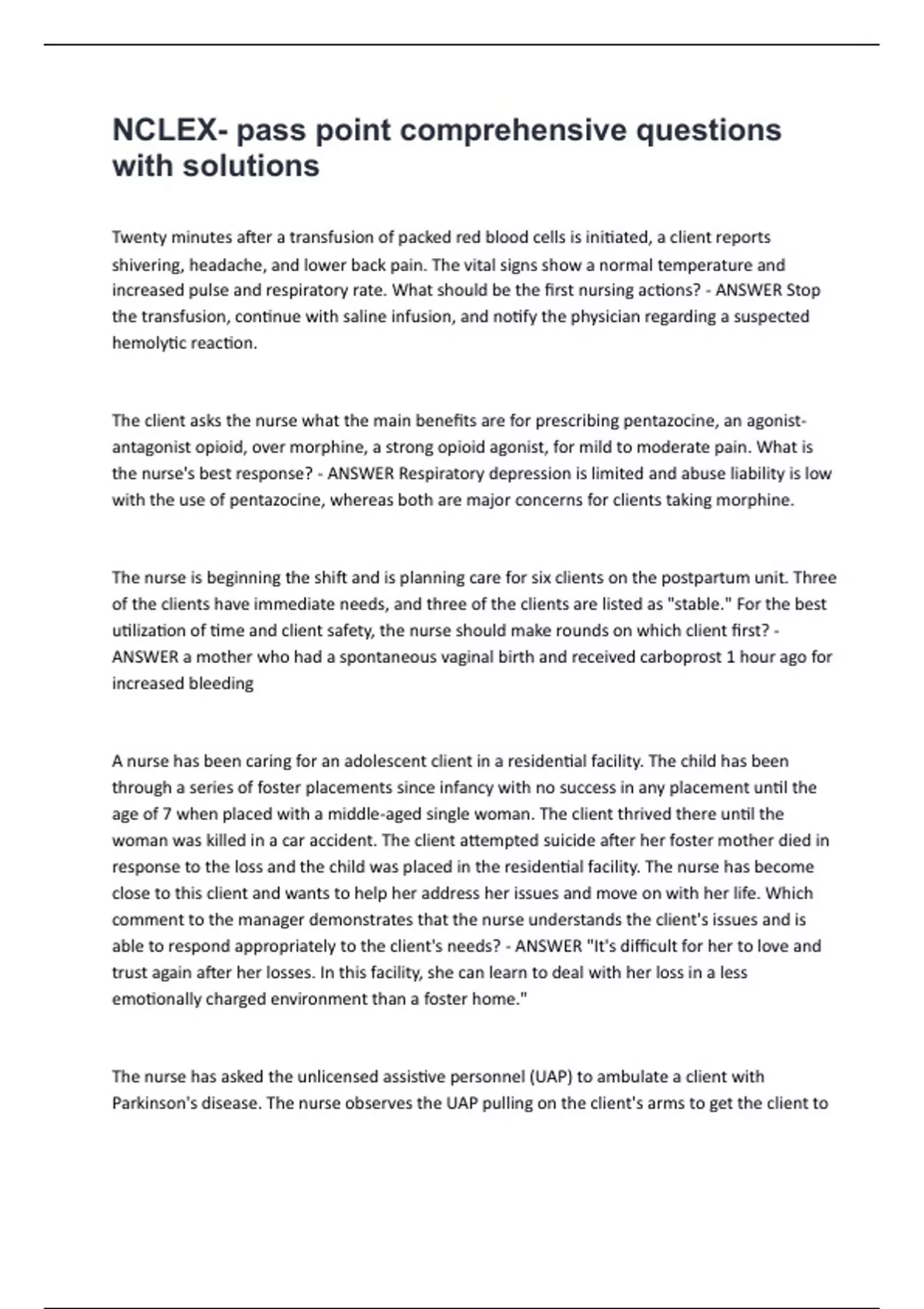 PASSPOINT /NURSING/ EXAMS PACKAGE DEAL QUESTIONS AND ANSWERS WITH VERIFIED SOLUTIONS UPDATED