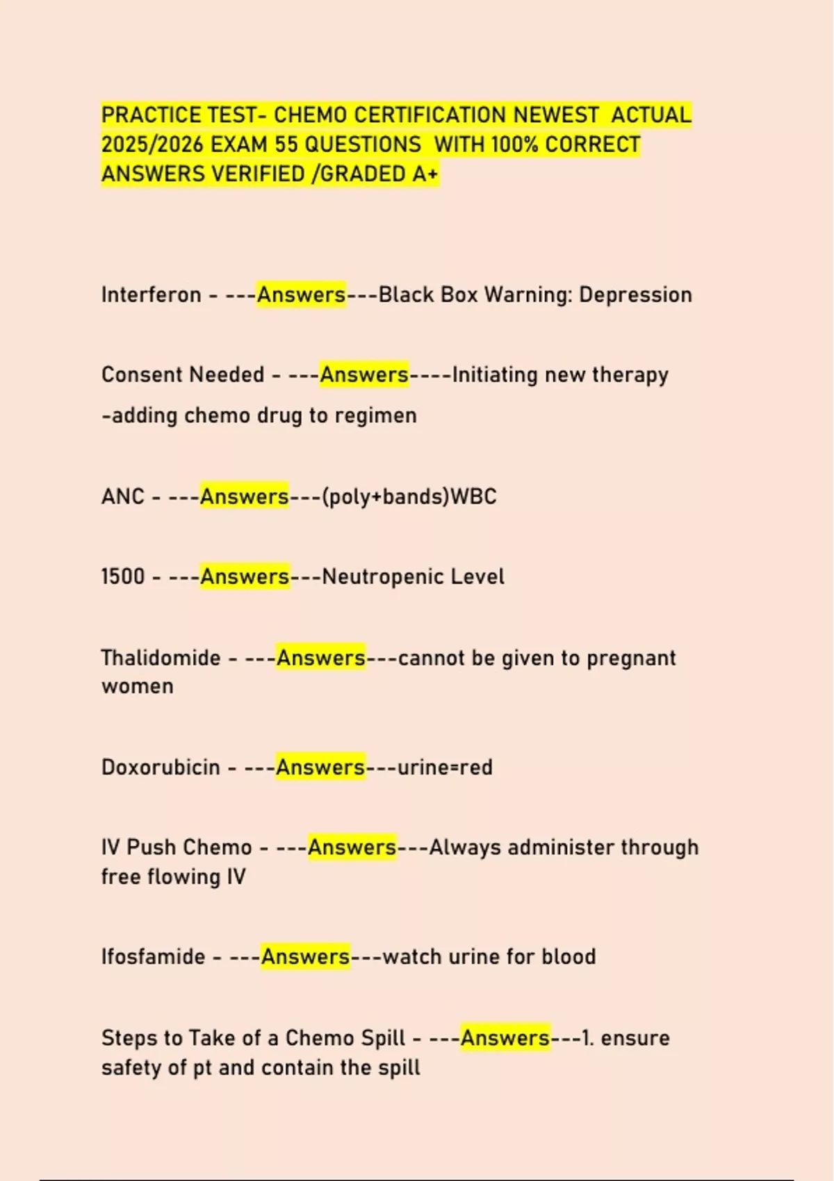 ONS/ONCC CHEMOTHERAPY EXAMS WITH VERIFIED ANSWERS