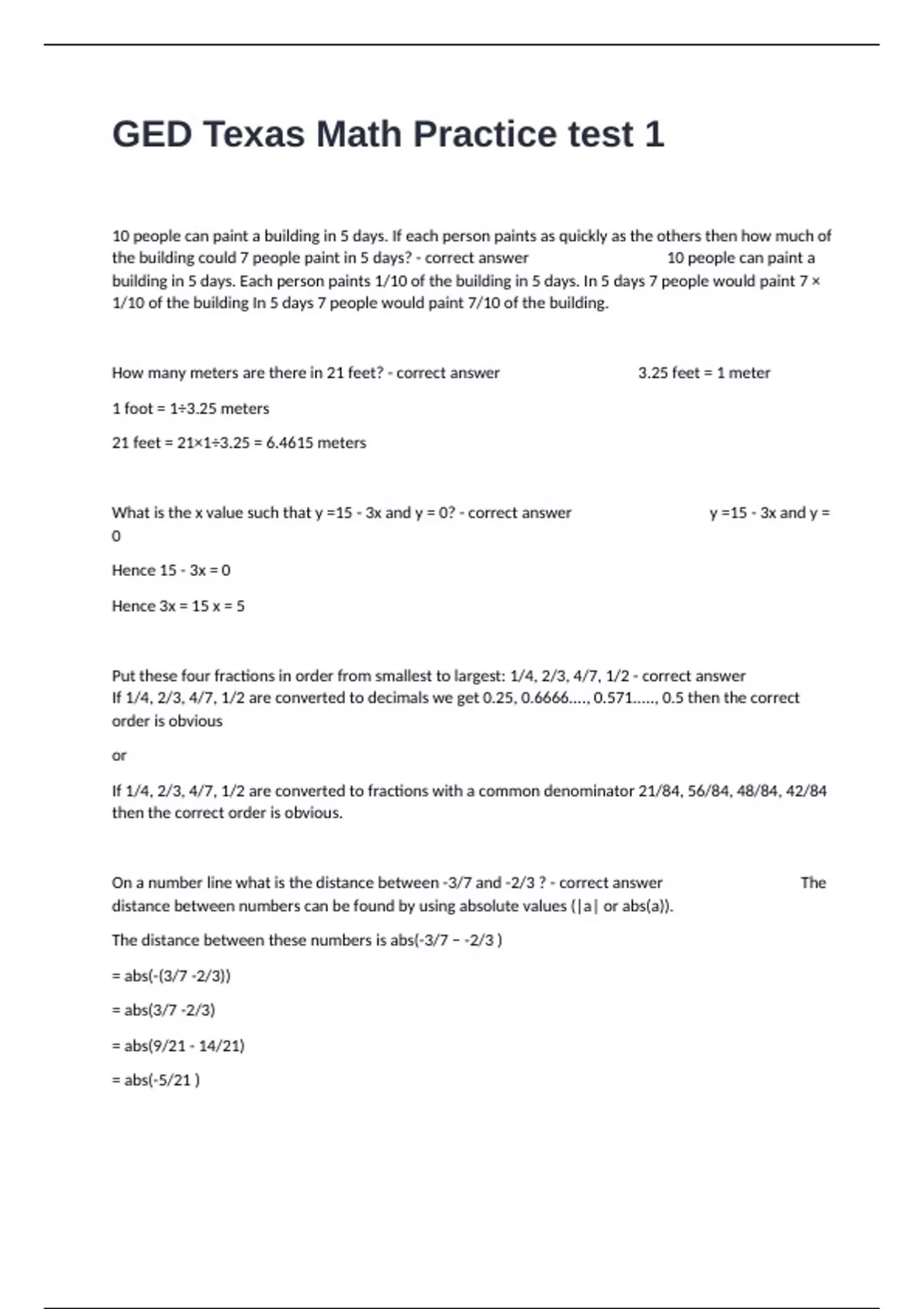 1 Exam (elaborations) GED Math Practice 2 Review Exam Questions With Multiple Choices And Verified Answers 2 Exam (elaborations) Ms. Noack s GED Math II Questions And Answers Distinction Guaranteed Pass. 3 Exam (elaborations) GED Math –Geometry Pre-Course Study Guide Actual Questions And Answers 100% Correct. 4 Exam (elaborations) GED Practice (