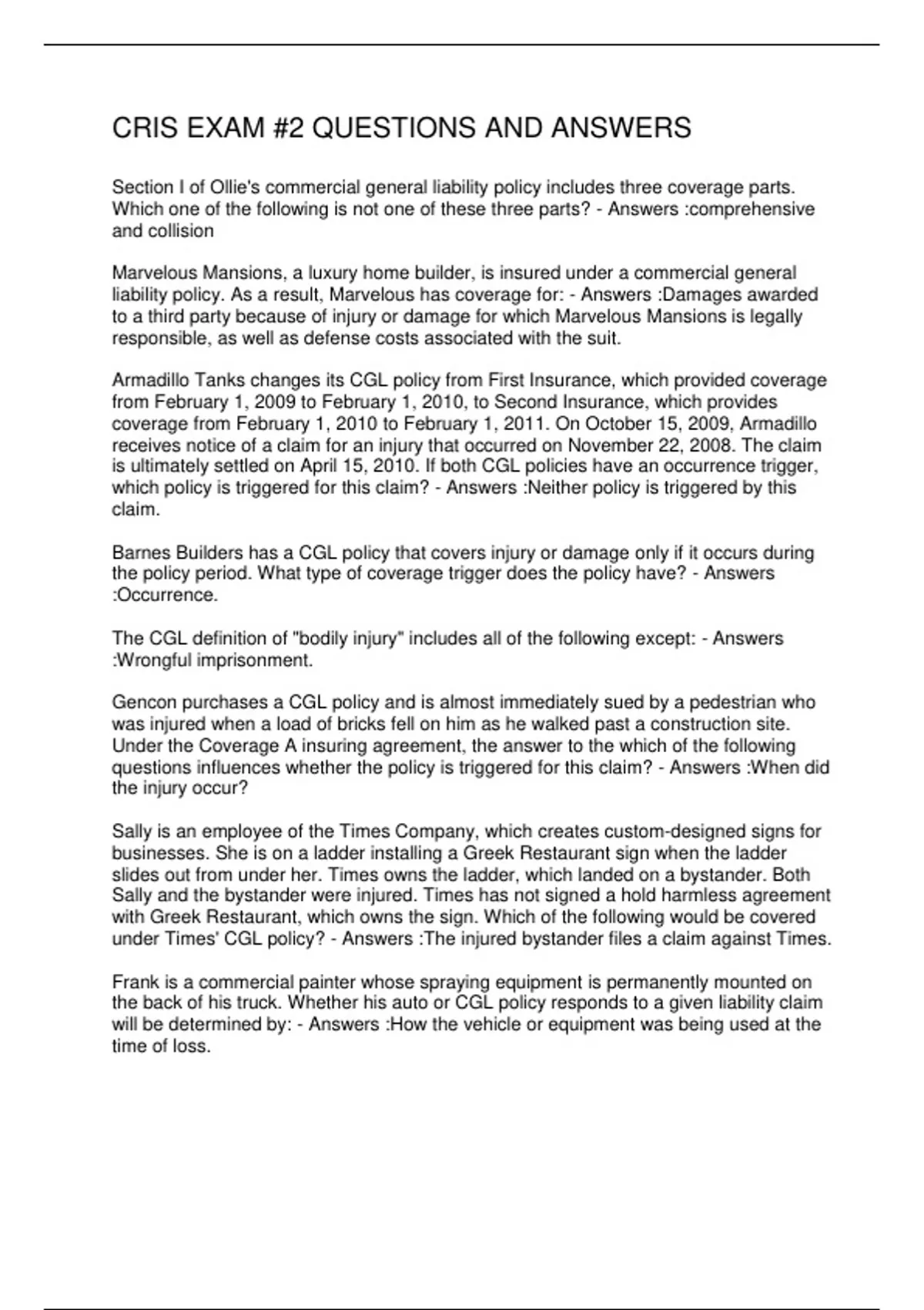 CRIS PRACTICE TEST QUESTIONS AND ANSWERS/CRIS EXAM QUESTIONS & ANSWERS/CRIS EXAM -2 QUESTIONS AND ANSWERS/CRIS TEST QUESTIONS AND ANSWERS/CRIS TEST QUESTIONS AND ANSWERS